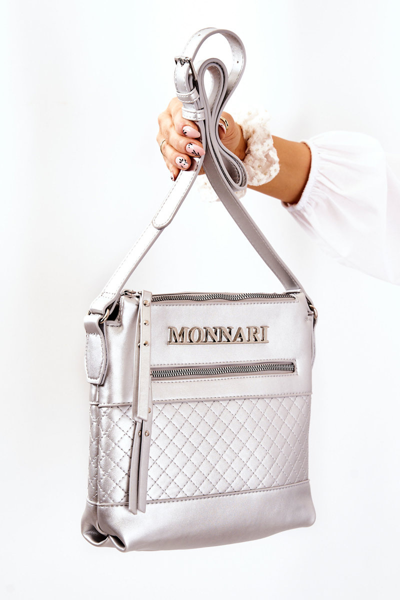 Dámska taška vyrobená z ekologickej kože s prešívaním. Má magnetovú uzavretú komoru, v ktorej sú dve otvorené vrecká a jedno uzavreté zipsom. Okrem toho sú na strane komory dve vrecká zatvorené zipsom. Na prednej strane je dekoratívne logo Monnari a vrecko s posúvačom. Taška má nastaviteľný, neodolateľný remienok. Ideálne na prácu alebo na výlet. Klasický model, ktorý by ste mali mať vo svojej skrini!