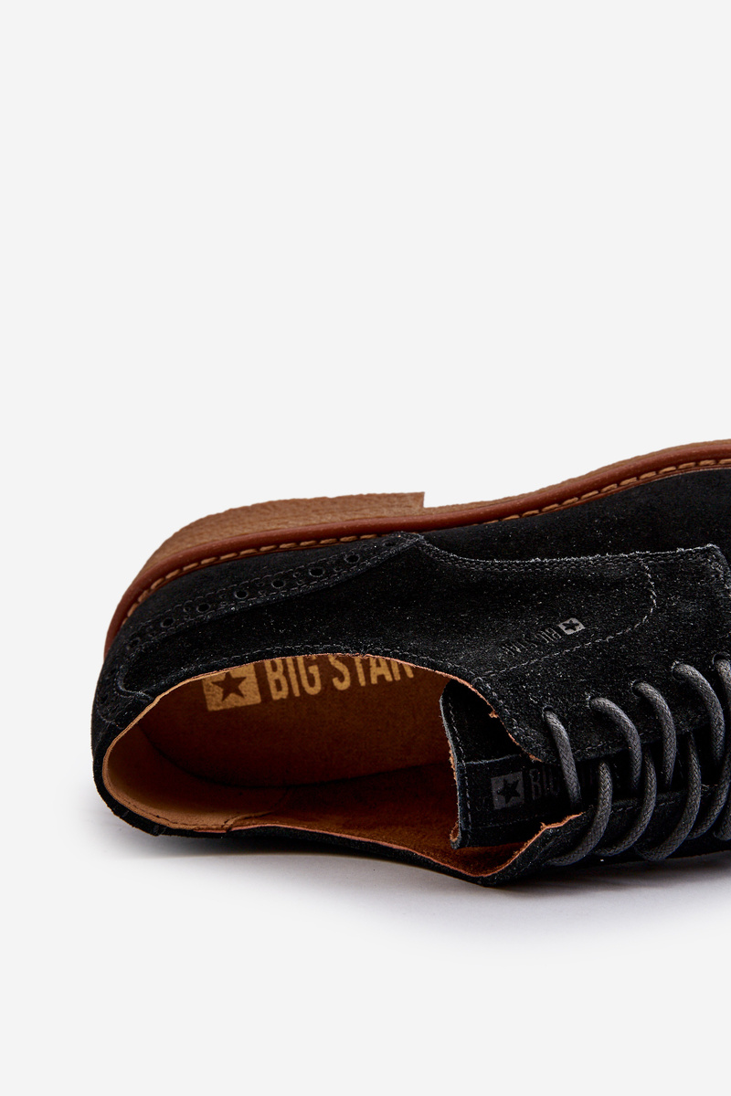 Mužská obuv od značky Big Star. Vyrobené z prírodného semišu. Osadené na plochom opätku. Zaoblené špičky. Klasicky viazaný model. Mäkká vložka sa postará o pohodlie počas používania. Klasický strih, ktorý využijete k mnohým štýlom! Při výběru velikosti se řiďte tabulkou velikostí.