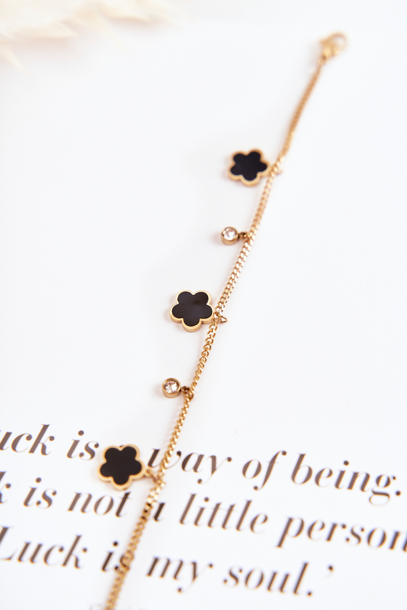 Náramok na reťazci so zlatými čiernymi kvetmi