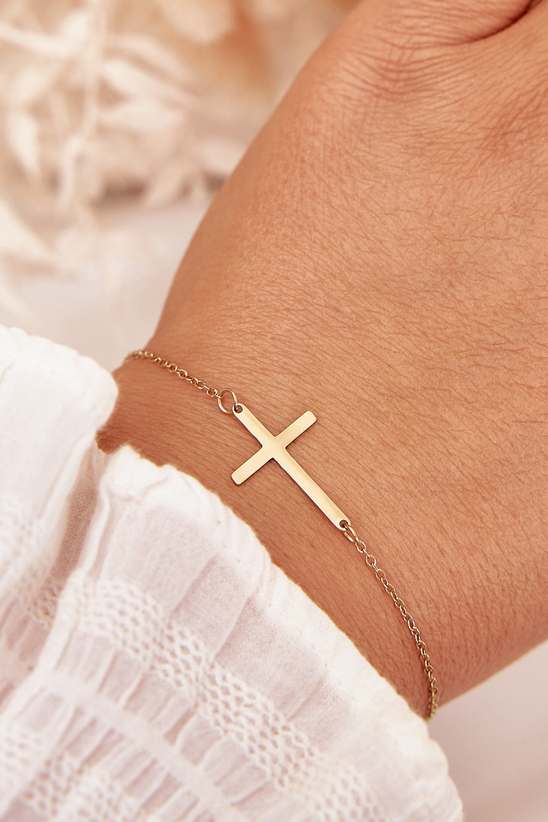 Dámsky náramok vyrobený zo sterilnej ocele je decentný doplnok na každý deň. Nastaviteľné zapínanie umožňuje perfektné prispôsobenie zápästiu, zabezpečujúc pohodlné nosenie. Jemný prívesok v tvare kríža dodáva šperku nadčasový charakter a je štýlovým akcentom v každom outfite.