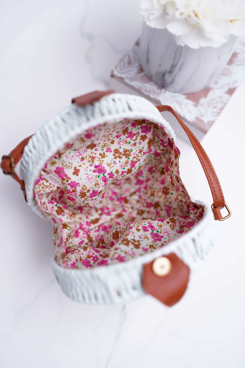 Neoddeliteľný prvok ženského šatníka je krásna taška. Náš návrh sa vyznačuje nielen krásnymi farbami, ale aj jemným materiálom, z ktorého bol vyrobený. Single -Chamber Bag, okrúhla pripevnená západkou. Vo vnútri je jedno veľké vrecko, lemované štýlovými materiálmi s kvetinovými motívmi. Dobre sa zmiešajú s vzdušnými šatami a teniskami.