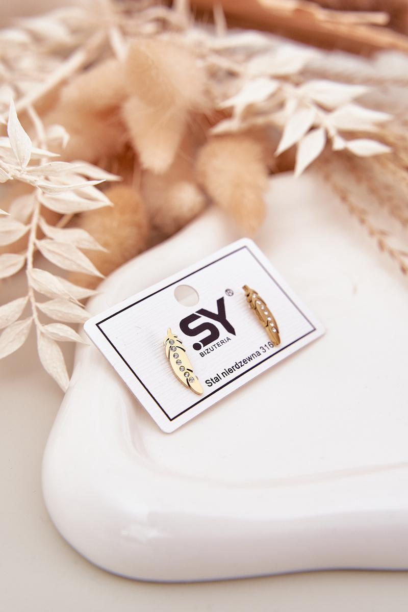 Náušnice Listy Se Zirkónmi Nerezová Oceľ Zlatá