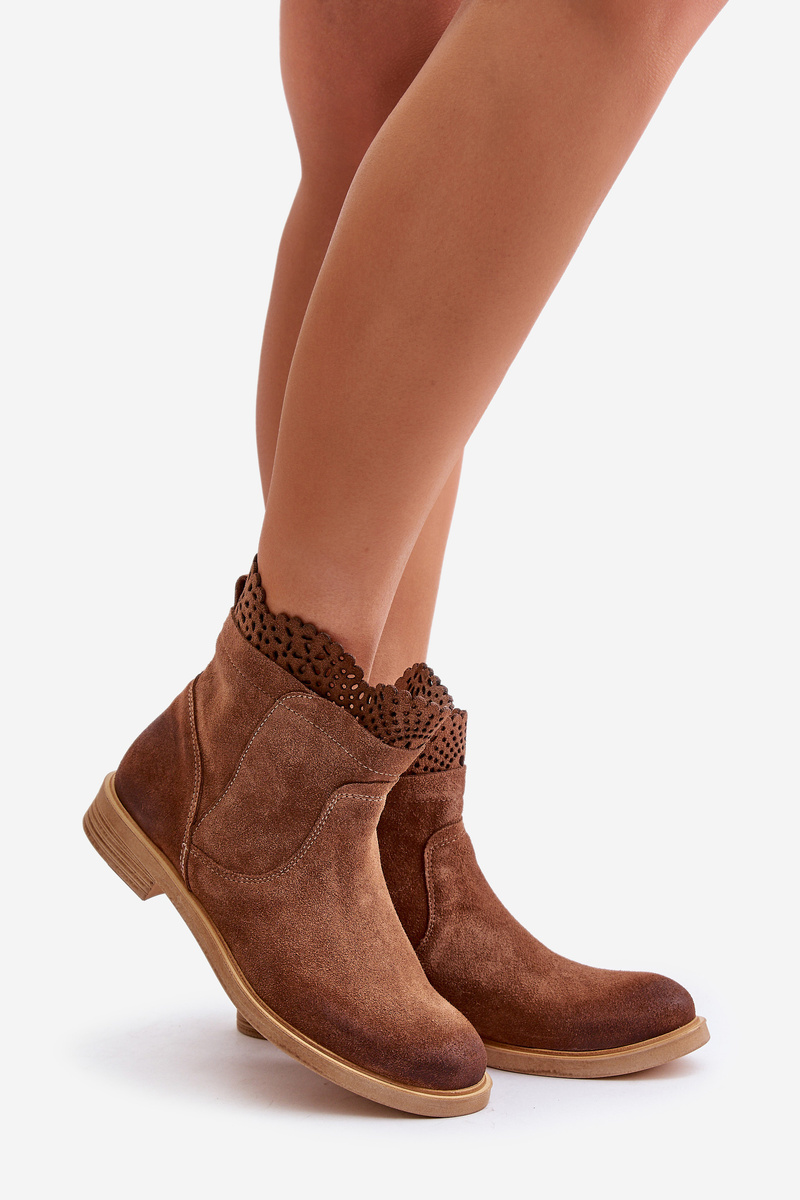 Nízke Dámske Čižmy Na Plochéj Podošve Zamszu Lewski 3624 Hnedé