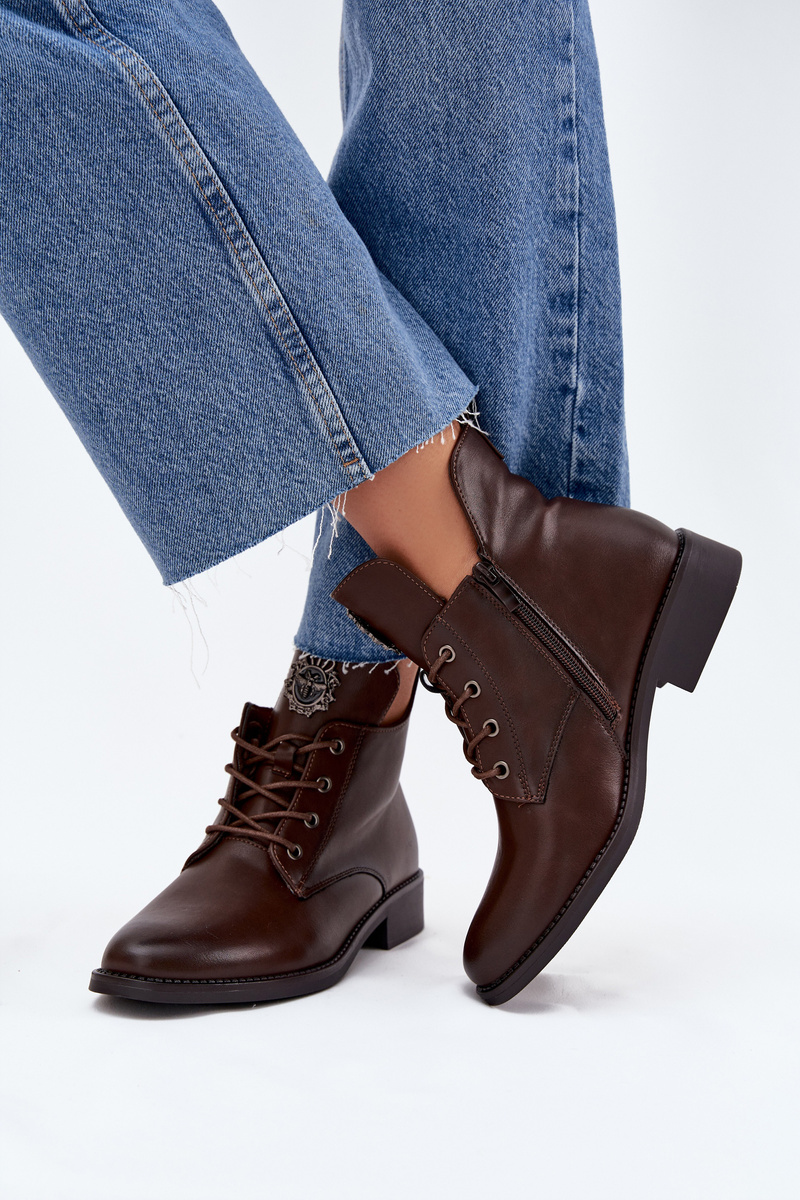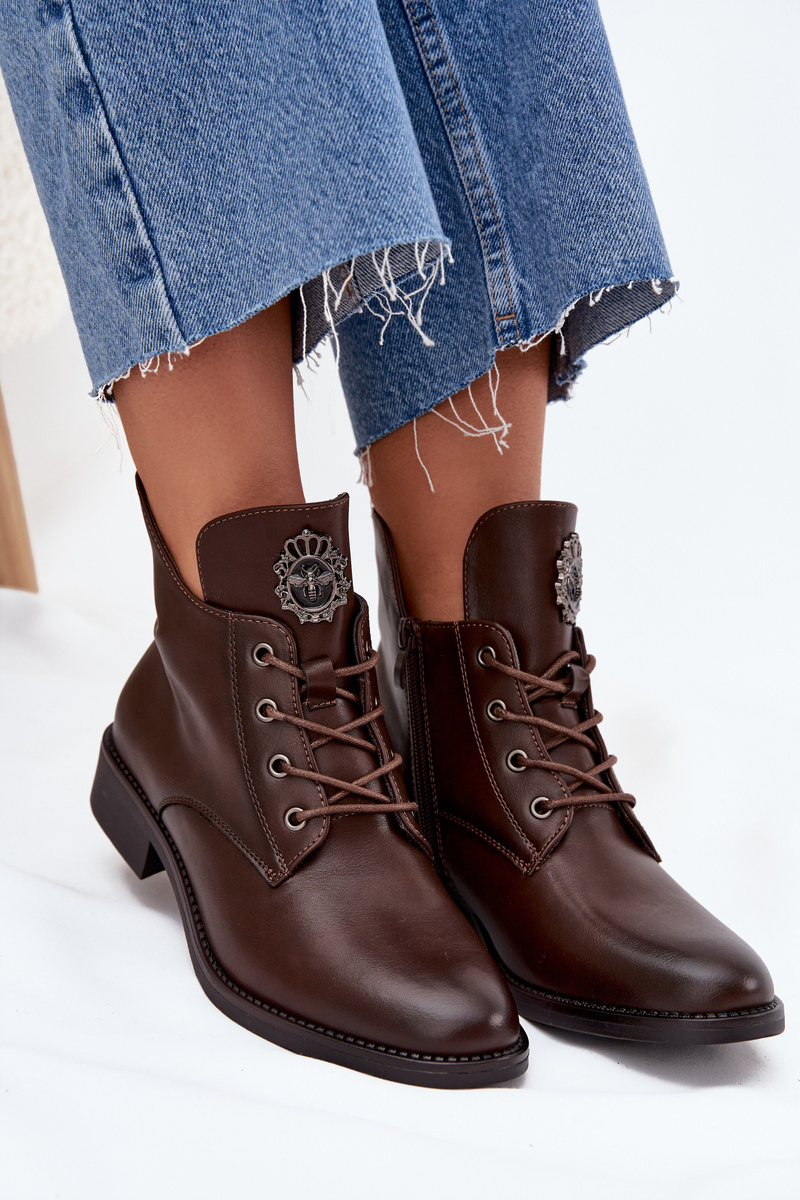 Nízke Dámske Čižmy Na Plochom Opätku S Dekoratívnym Detailom Zateplené Hnedé Cylira