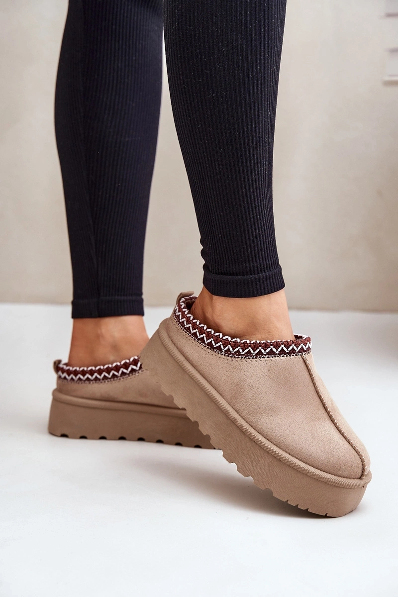 Nízke Dámske Snehové Topánky S Vyšívaním Na Platforme Tmavo Béžové Narirya