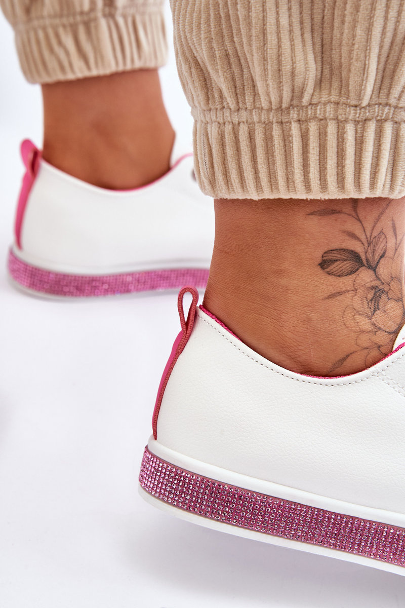 Nízke dámske tenisky s bielymi a ružovými kamienkami Demira