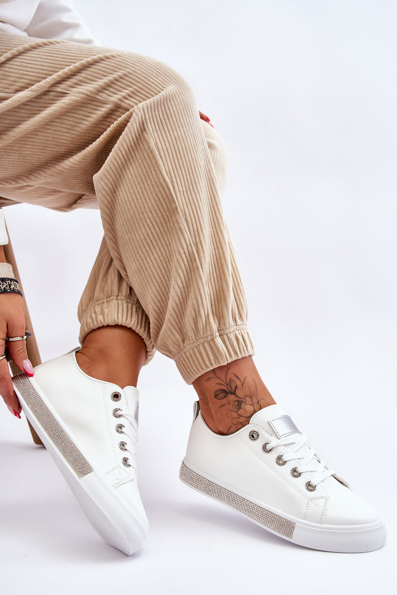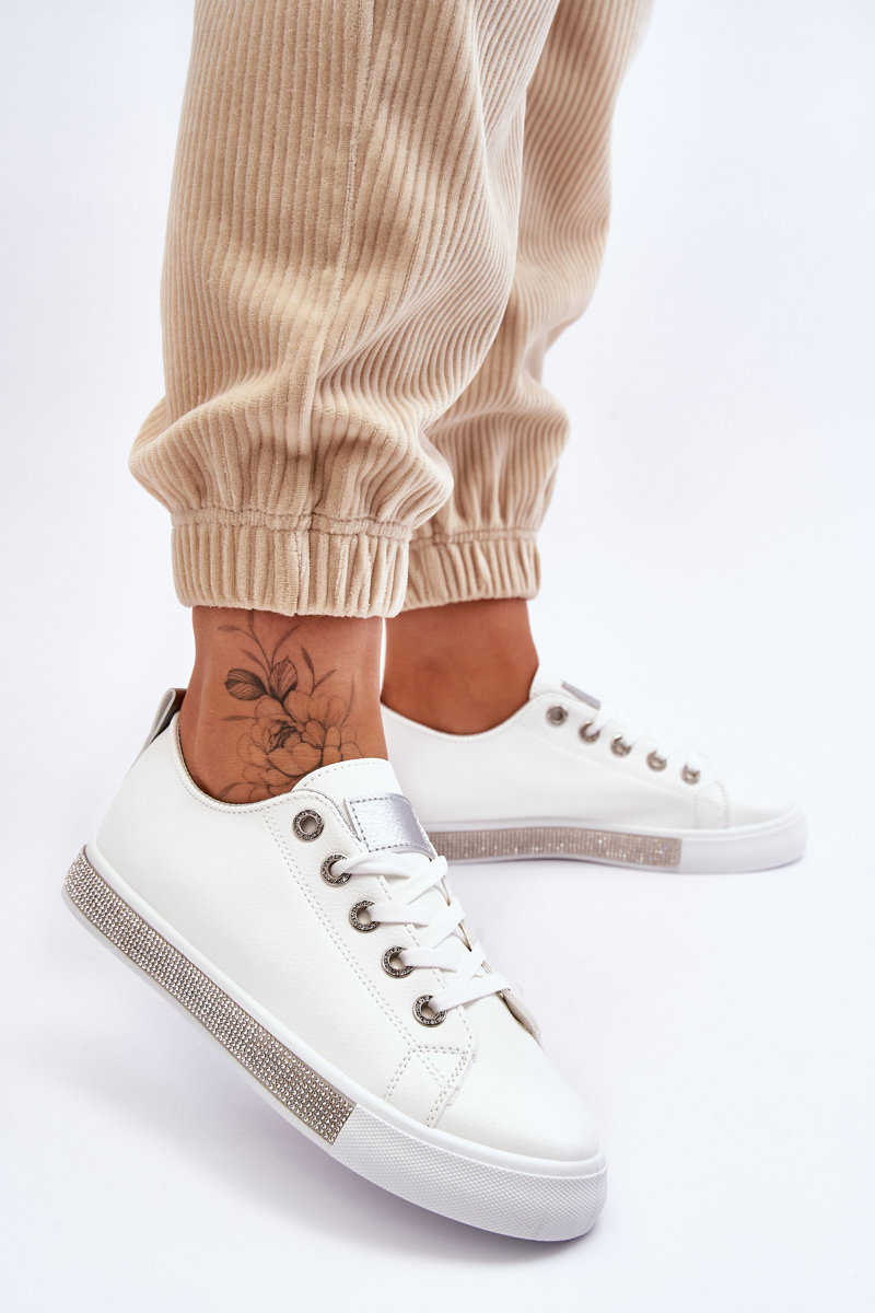 Nízke dámske tenisky s bielymi a striebornými kamienkami Demira