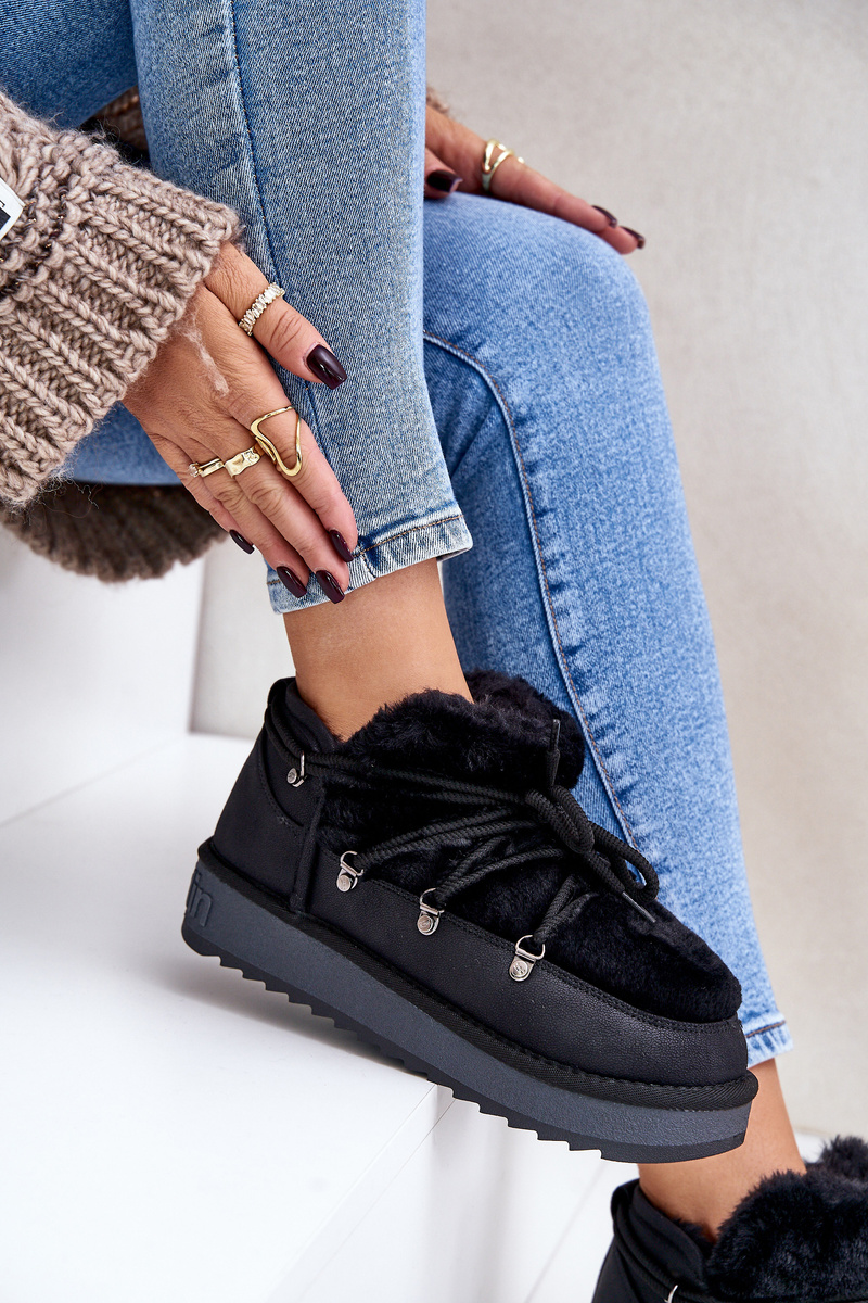 Nízke Snehové Topánky Na Platforme S Kožúškom D.Franklin Čierne DFSH370011