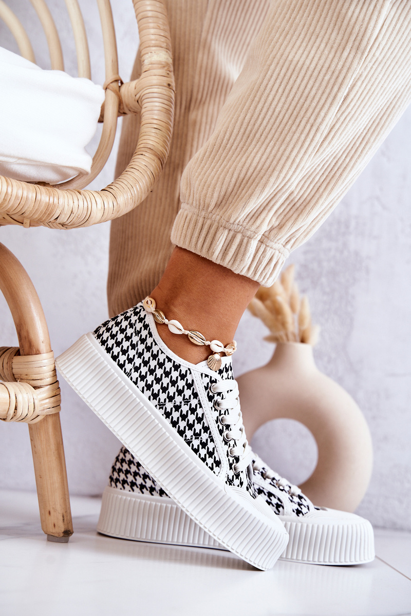 Módne tenisky na masívnej gumovej platforme. Topánky majú hornú časť materiálu a podrážku neklipy. Skvelý model, ktorý bude zodpovedať mnohým štýlom! Nos je zosilnený gumovým plastom. Tenisky majú klasickú väzbu. Nezabudnite sa pozrieť na našu kolekciu tenisiek! Pri výbere veľkosti navrhnite tabuľku veľkosti.