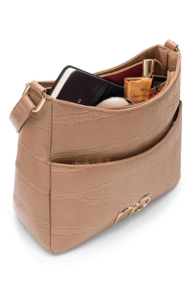 Veľký vrecko na plece sa vyrobil zo 100% polyuretánu, zatiaľ čo podšívka je 100% polyester. Vrecko má jednu komoru zatvorenú zipsom, v ktorej sú dve otvorené vrecká a jedno uzavreté zipsom. Má dekoratívne lisovacie napodobňovanie pokožky krokodílov a logo na prednej strane. Na prednej strane je tiež ďalšie vrecko pripevnené posúvačom.
