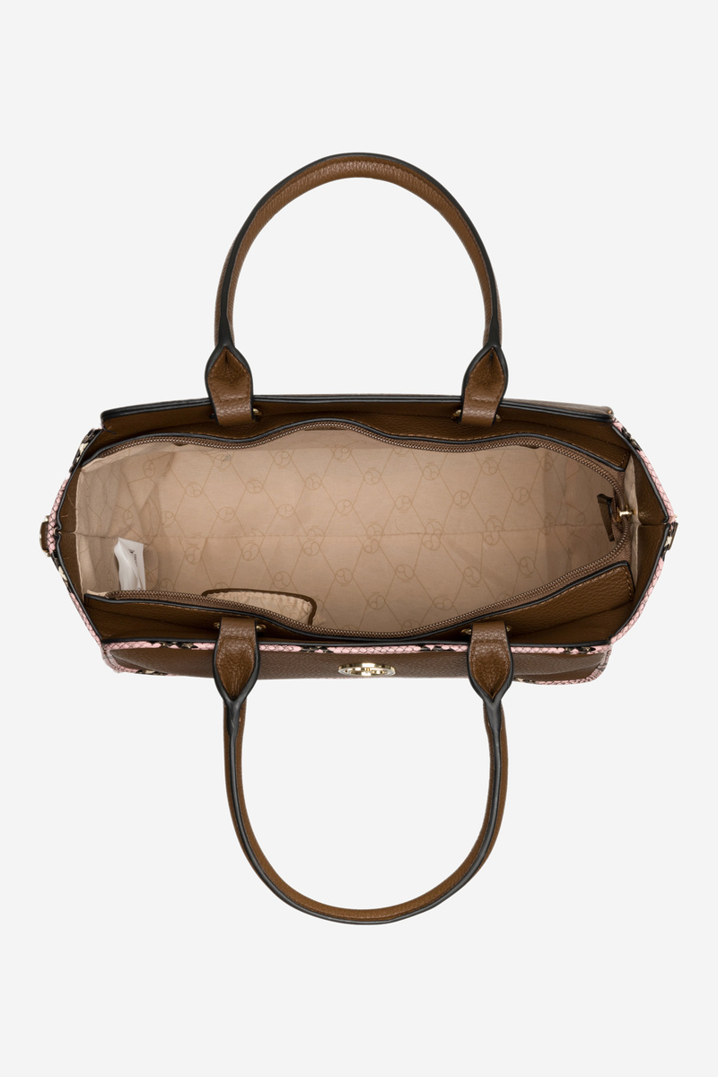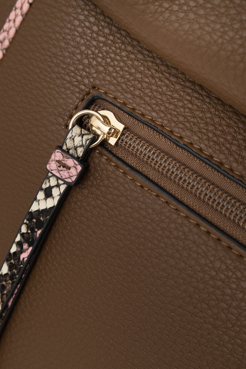 Mestská taška je vyrobená z ekologickej kože. Klasický strih je zdobený jemným logom umiestneným vpredu. Tento model je dostatočne priestranný na to, aby vyhovoval dokumentom A4. Taška má hlavnú komoru, ktorá sa zatvára k posúvača, a interiér s tromi vreckami: dve z nich sú otvorené a tretí je vybavený zipsom. Ďalší, tenký, nastaviteľný popruh, ktorý vám umožňuje nosiť vrecko na ramene alebo iným preferovaným spôsobom.