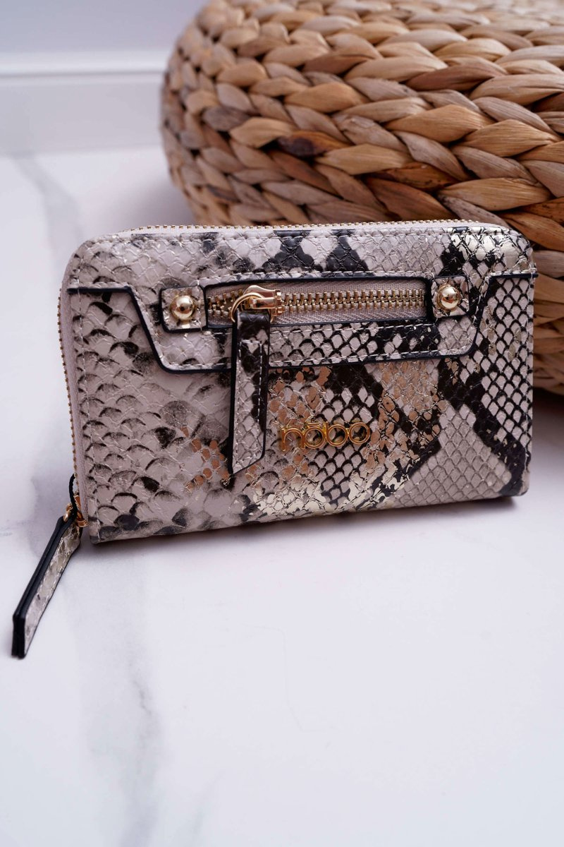 Elegantná dámska malá peňaženka renomovanej značky Nobo. Klasický hadový vzor vyrobený z ekologickej kože. Peňaženka pripevnená zipsom. Vo vnútri je miesto pre 6 kariet alebo iné dokumenty a tri komory, z ktorých jedna je pripevnená posúvačom. Peňaženka je zabalená do elegantnej čiernej skrinky s logom značky.
