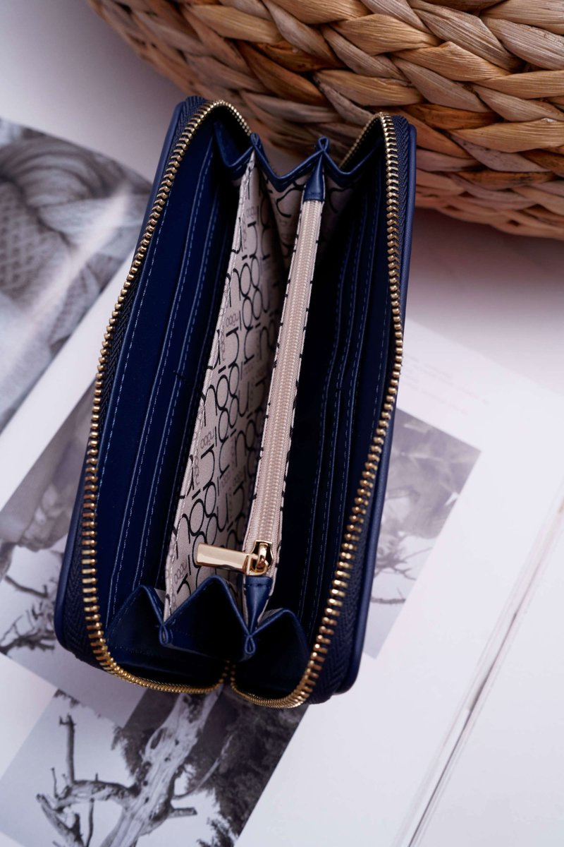 Elegantná ženská peňaženka renomovanej značky Nobo. Klasický vzor vyrobený z ekologickej kože. Peňaženka pripevnená zipsom. Vo vnútri je miesto pre 8 kariet alebo iné dokumenty a štyri komory, z ktorých jedna je pripevnená posúvačom. Peňaženka je zabalená do elegantnej čiernej skrinky s logom značky.