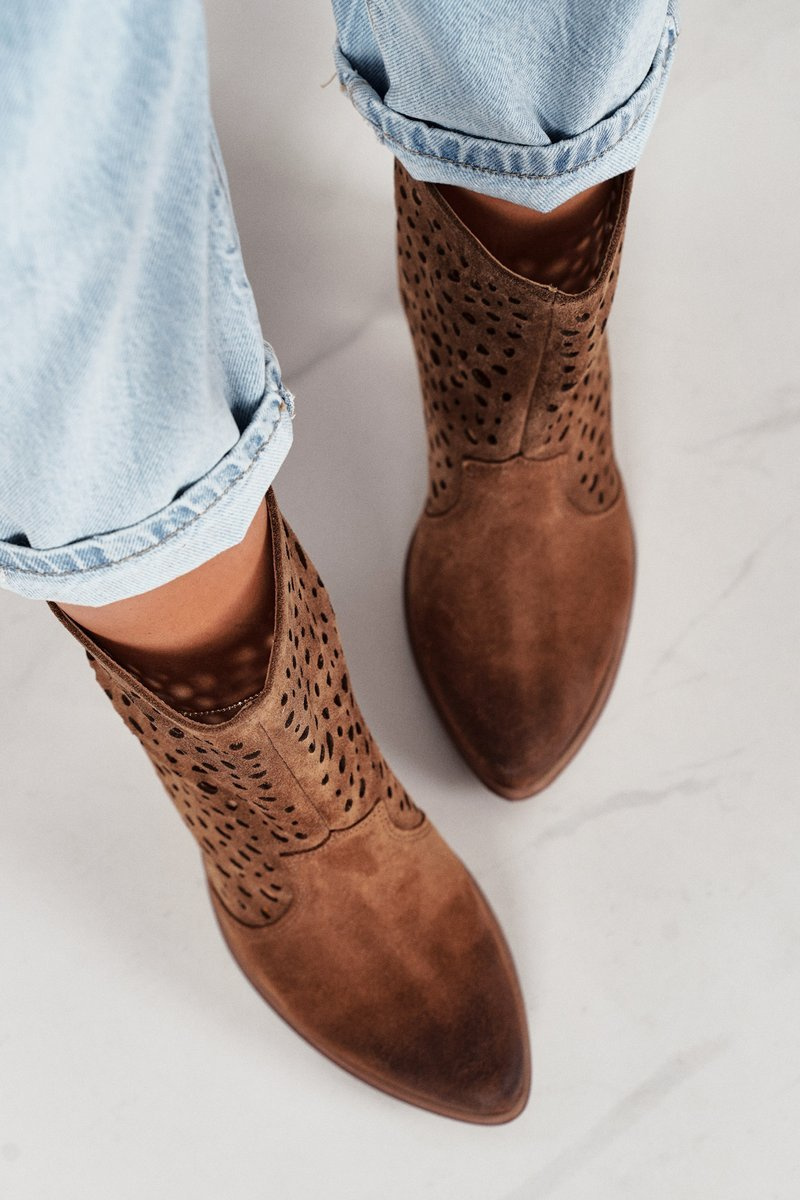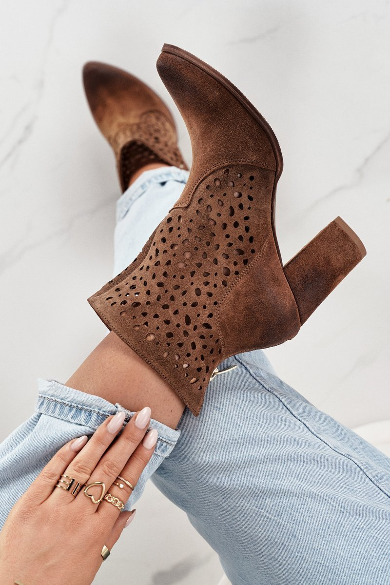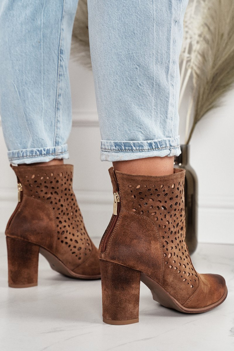 Otvorené topánky na semišovom poste vynikajúce 1219 koňak