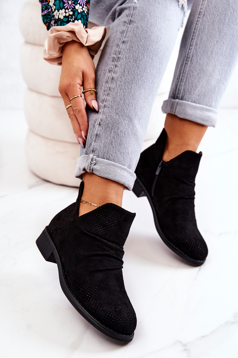 Krásne topánky vyrobené zo semišovej ekologickej kože s výrezmi na bokoch hornej časti. Materiálna vložka a pohodlná päta sa postará o vaše pohodlie. Čižmy doplnia veľa štyidov! Skorumpovaný na prednej strane. Pripevnené zo strany. Nezabudnite skontrolovať celú našu zbierku ženských topánok! Pri výbere veľkosti navrhnite tabuľku veľkosti.