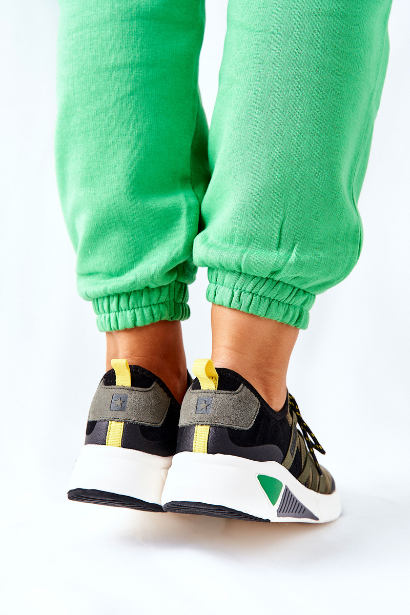 Dámske športové topánky z poľskej značky Big Star. Zvuk je vyrobený zo semišovej kože a textilného materiálu. Topánky sú veľmi ľahké a majú podrážku nekripcie. Vložka je veľmi mäkká vďaka penovej pamäti systému, ktorá si pamätá tvar chodidla, poskytuje perfektné prispôsobenie, absorbuje otrasy, odolné voči deformácii a umožňuje vám odpariť vlhkosť a upraviť teplotu. Nezabudnite skontrolovať našu kolekciu veľkých hviezd. Pri výbere veľkosti navrhnite tabuľku veľkosti.