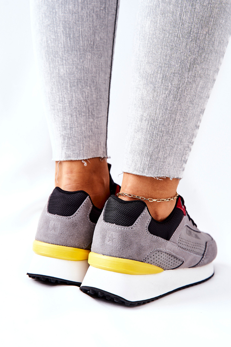 Športové topánky sú vyrobené z prírodnej semišovej kože a ekologickej kože. Topánky majú vložený systém pamäťového penového systému. Vložka si pamätá tvar chodidla, poskytuje perfektné prispôsobenie, absorbuje otrasy, je odolná voči deformácii a umožňuje vám odpariť reguláciu vlhkosti a teploty. Športové topánky majú obrovskú platformu, vďaka ktorej sa v nich môžeme cítiť stabilní. Pri výbere veľkosti navrhnite nasledujúcu tabuľku.