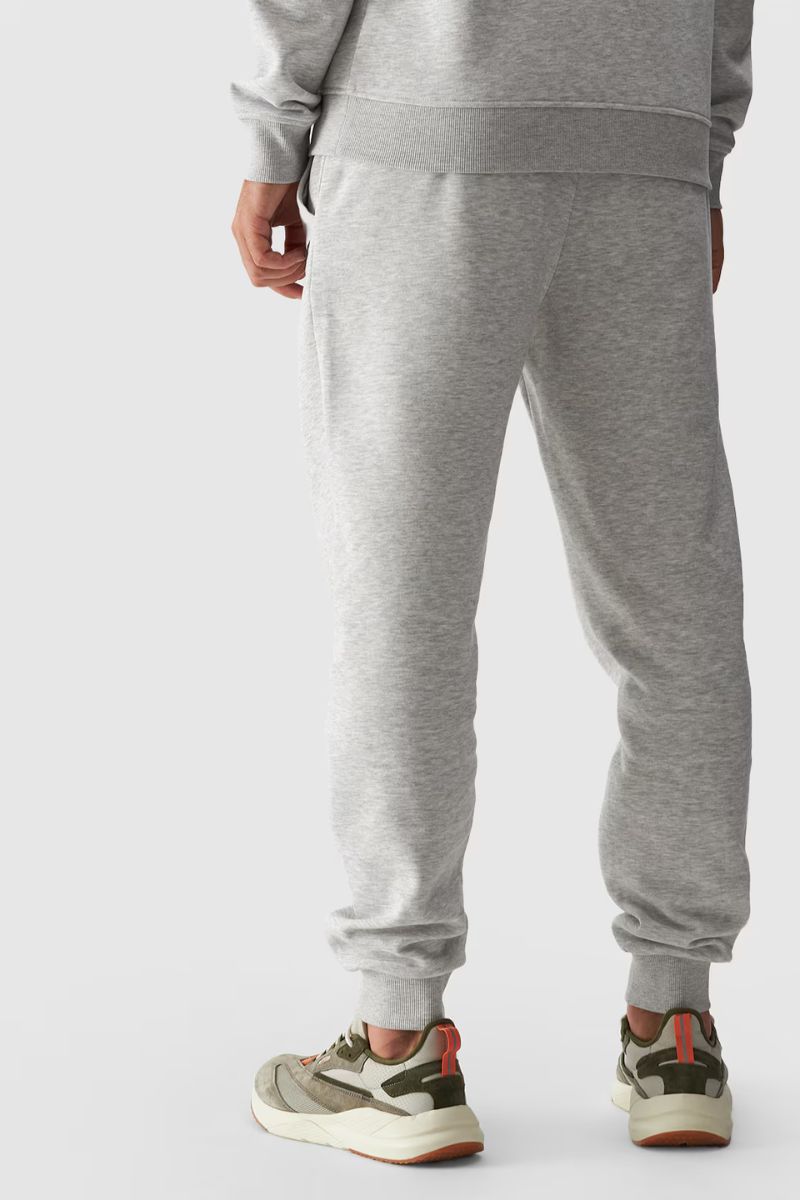 Pánske jogger tepláky sú ideálnym prvkom ako pre neformálne, tak aj pre športové štýly na každodenné nosenie. Majú pravidelný strih, ktorý sa pohodlne prispôsobuje siluete a zúžené nohavice sú zakončené elastickým manžetom. French terry tkanina je z jednej strany hladká, zatiaľ čo z druhej má viditeľný pletený vzor v podobe slučky. Tkanina v tejto väzbe je mäkká, viac splývavá a tenšia na dotyk. Sú vyrobené z 80% bavlny, takže sú mäkké, odolné a príjemné na dotyk. Prídavok polyesteru (20%) zabezpečuje, že materiál si zachová tvar a je odolný voči opotrebovaniu aj počas mnohých sezón. Nohavice nemajú podšívku, čo ich robí ľahšími a vhodnými na teplejšie dni. Na bokoch sú 2 otvorené vrecká. Elastický pás s vnútornou reguláciou na šnúrky.