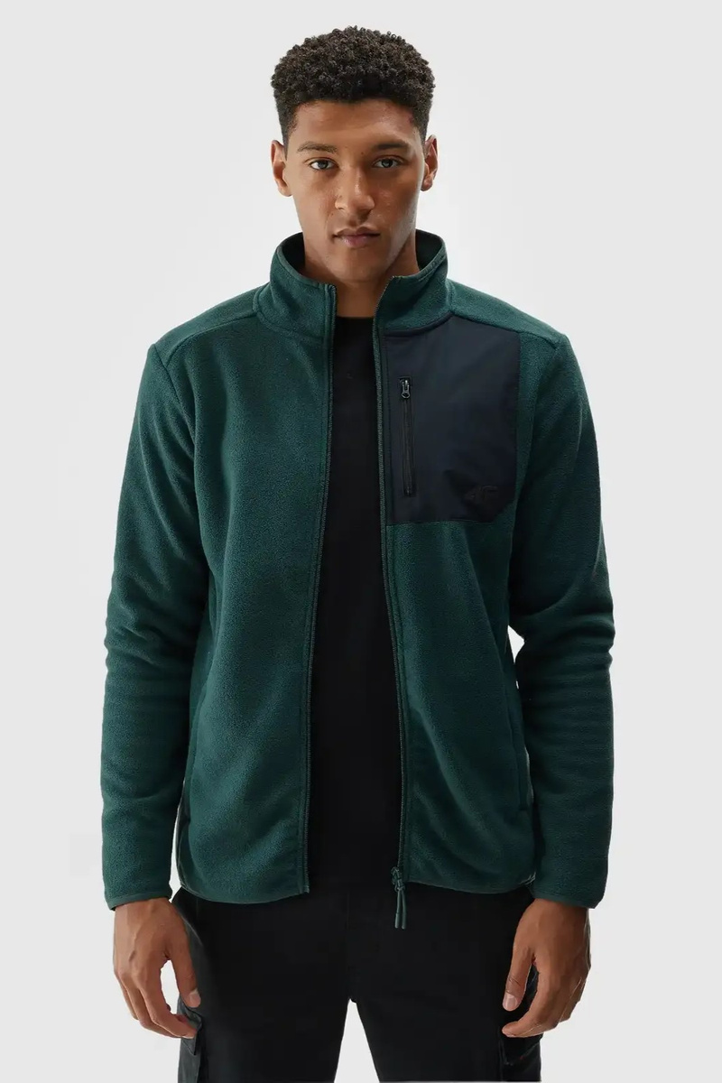 Teplá pánska mikina je vyrobená z kombinácie mäkkého fleece a syntetických materiálov. Fleece sa vyznačuje veľmi dobrou tepelnou izoláciou a má aj hydrofóbne vlastnosti a rýchlo schne. Syntetický materiál na náprsnej kapse zabezpečuje trvanlivosť a je ľahko udržovateľný. Technológia 4F Warm podporuje tepelný komfort. Detaily, ktoré majú význam: golier chrániaci krk, praktické vrecká. Teplá pánska mikina má golier, ktorý chráni krk. Rukávy sú zakončené elastickým lemom. Na bokoch sú 2 vrecká na zips. Na hrudi je malá vrecko na zips. Hlavný zips je jednosmerný. Hlavný materiál: 100% polyester Hlavný materiál 2: 100% polyester Podšívka: 100% polyester