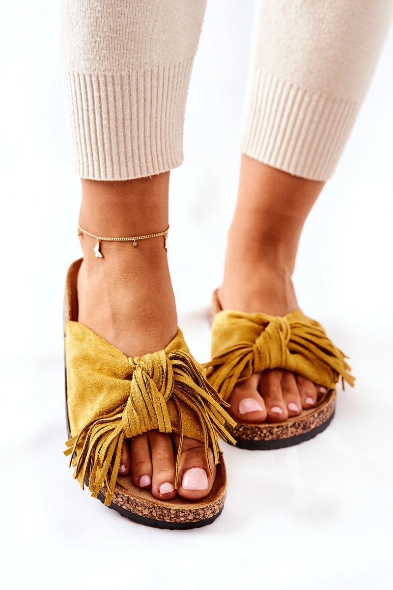Papuče na korkovej podrážke žlté
