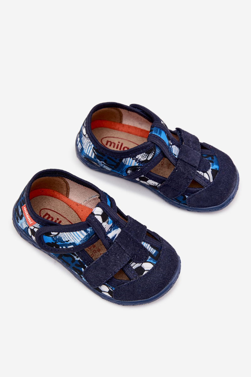 Papučky Milami Detské Na Suchý Zips S Loptami Tmavomodré Reathiana