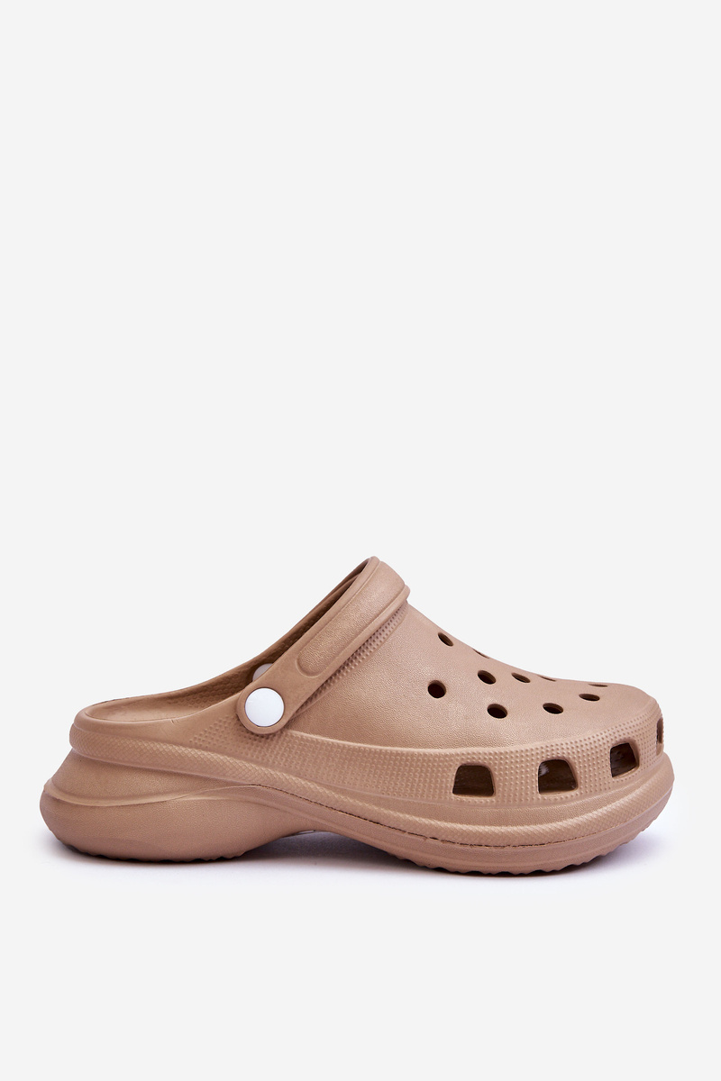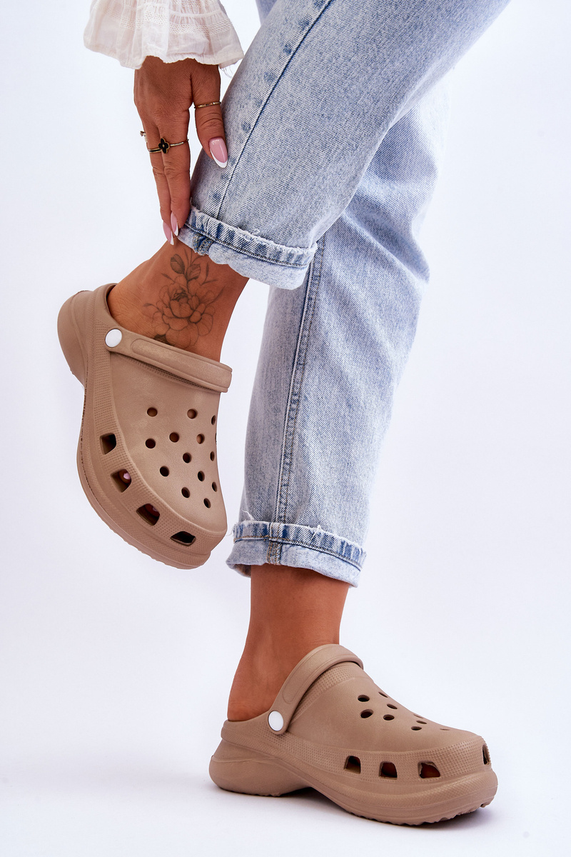 Dámske kroky boli vyrobené z penového plastu. Vložka má jemné karty. Pohyblivý popruh chráni pred pohybom chodidla. Topánky boli zabudované na masívne ploché päty a plošinu. Ideálny model pre prácu v záhrade alebo používanie doma namiesto pápežstva. Otvory v hornej časti umožňujú správne vetranie obuvi. Pri výbere veľkosti navrhnite tabuľku veľkosti.