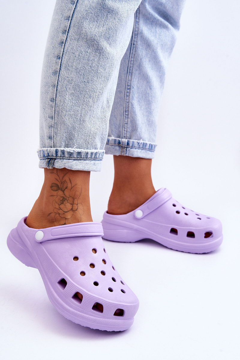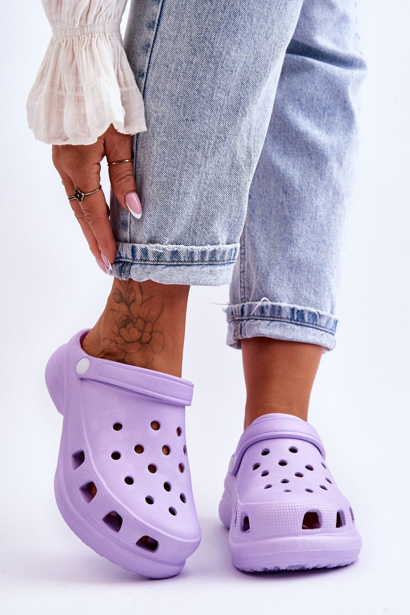 Dámske kroky boli vyrobené z penového plastu. Vložka má jemné karty. Pohyblivý popruh chráni pred pohybom chodidla. Topánky boli zabudované na masívne ploché päty a plošinu. Ideálny model pre prácu v záhrade alebo používanie doma namiesto pápežstva. Otvory v hornej časti umožňujú správne vetranie obuvi. Pri výbere veľkosti navrhnite tabuľku veľkosti.