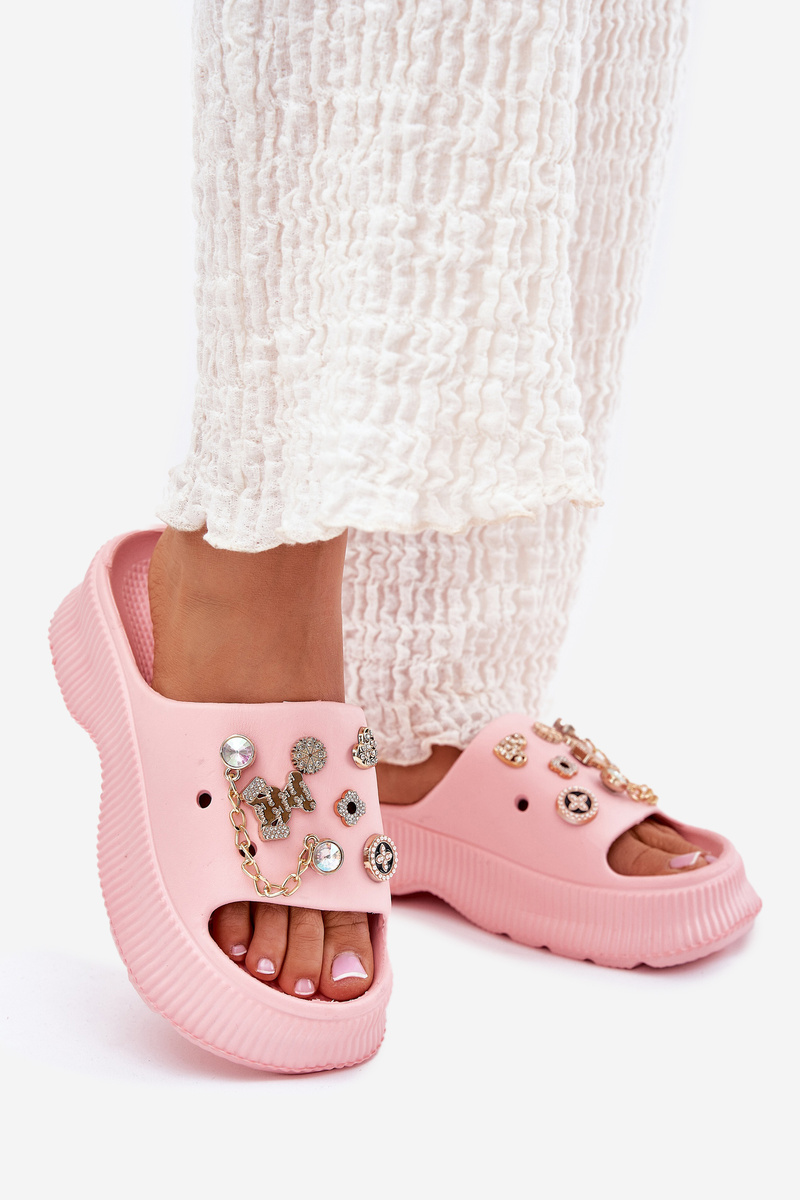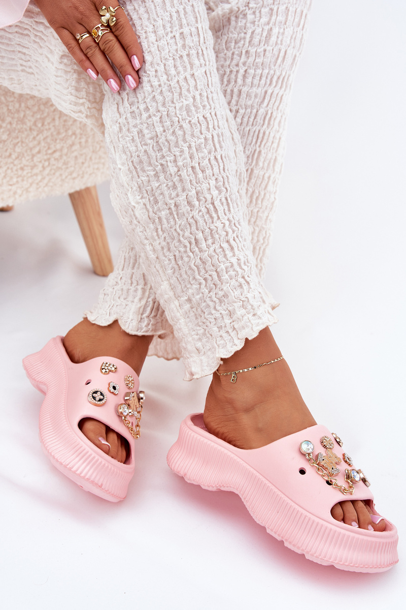 Pěnové Dámske Šľapky So Zlatými Krúžkami Růžové Hortiana