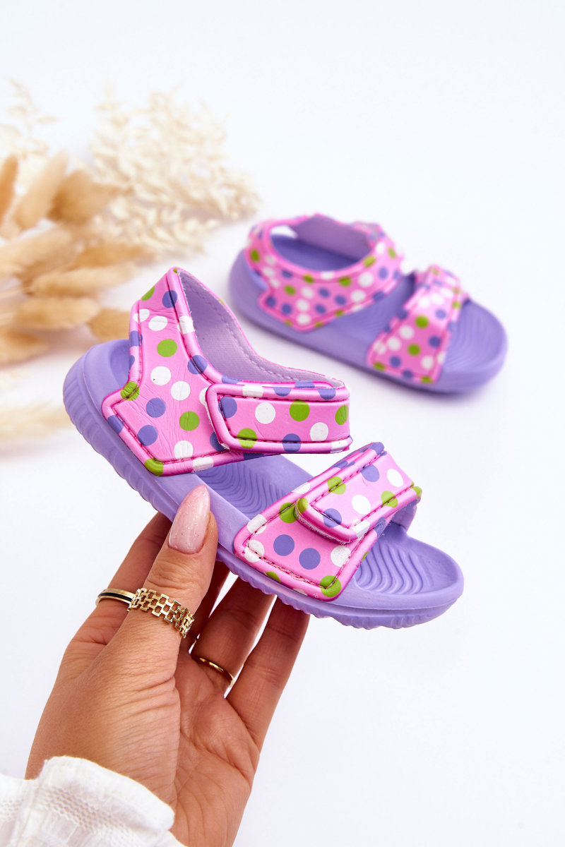 Penové detské ľahké sandále s fialovými a ružovými vzormi Malaga