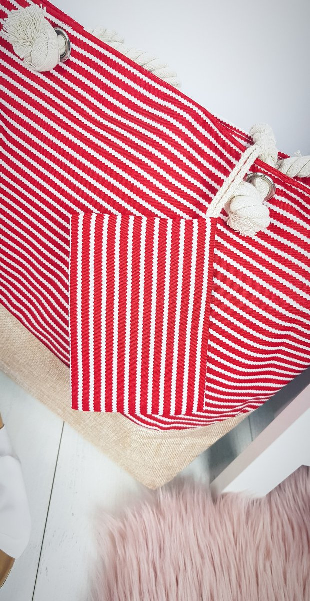 Pláž Veľká kabelka Dámske červené pruhy