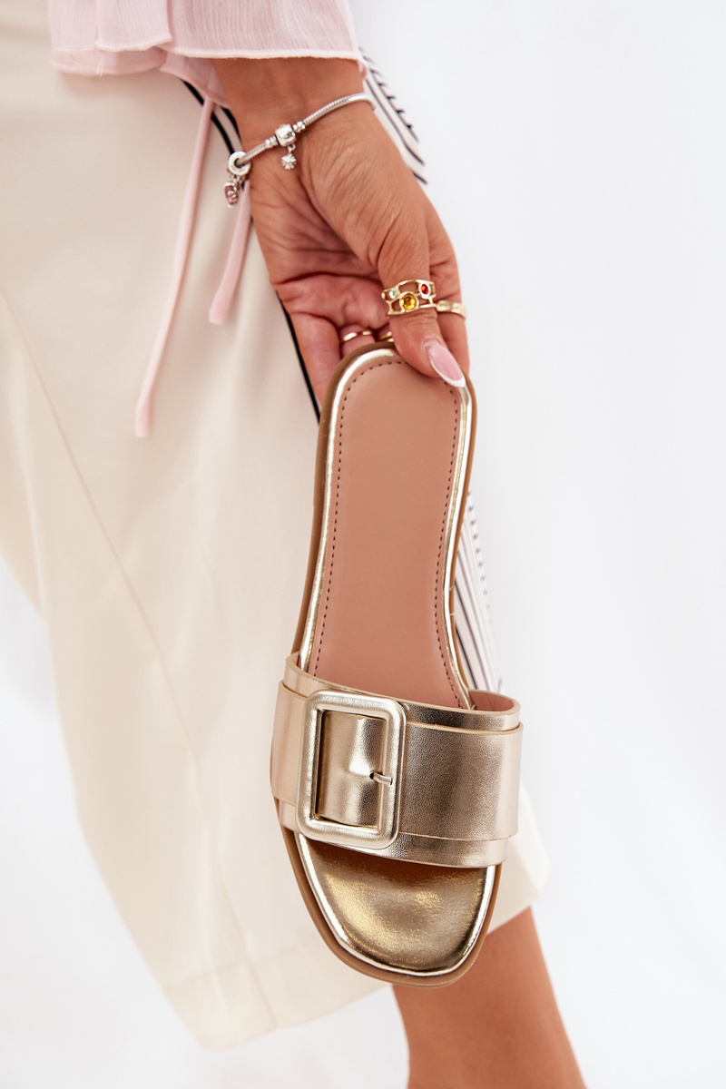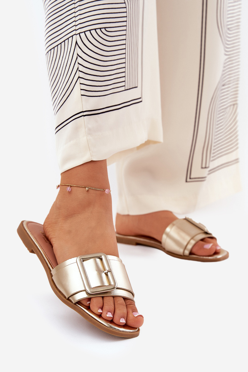 Ploché Dámske Sandále Eko Koža S Prackou Zlaté Bamma