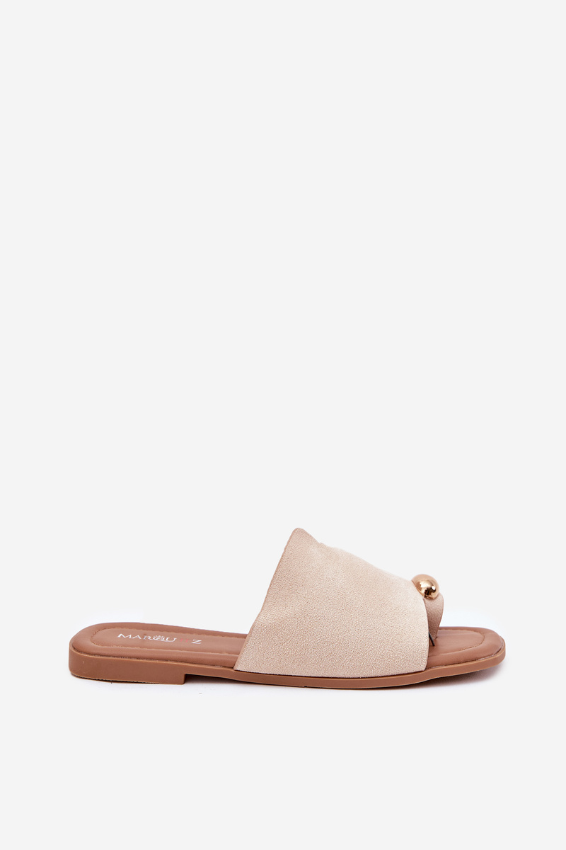 Ploche Dámske Sandále So Zlatým Detailom Béžové Ebilina