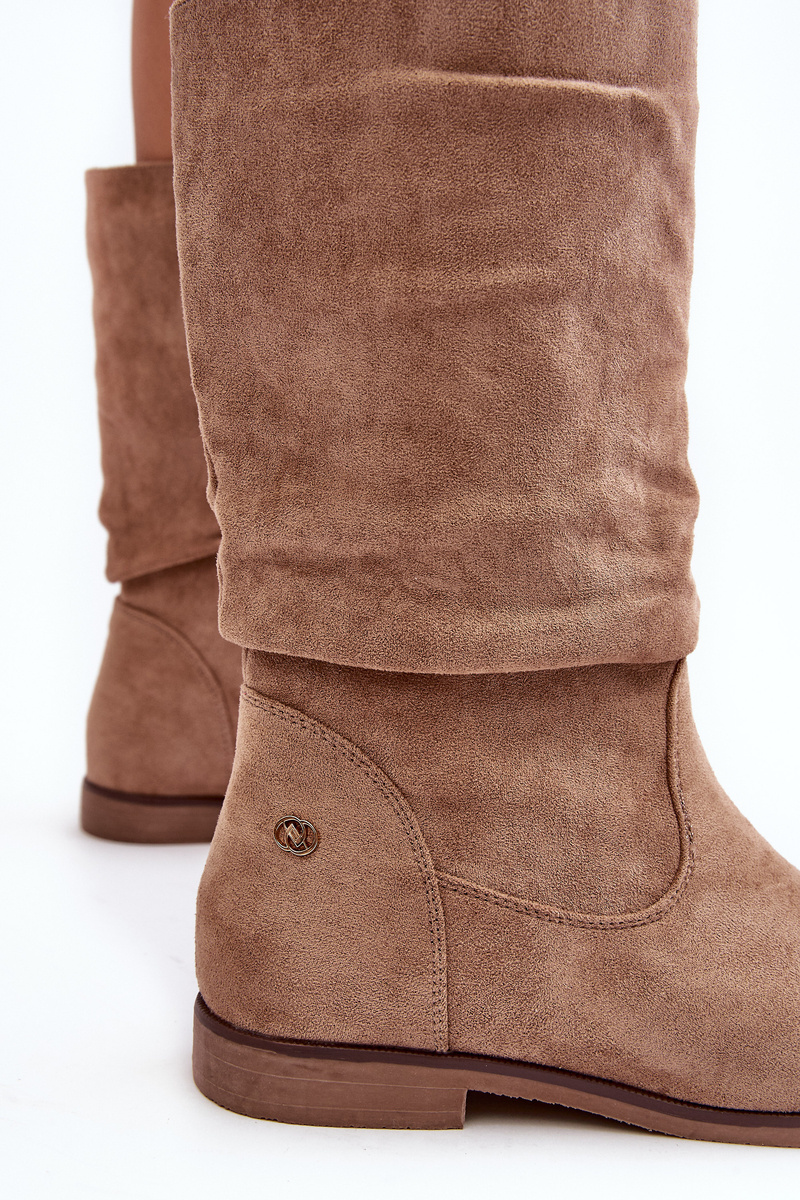 Ploché dámske topánky s krknutými hornými béžovou kotine