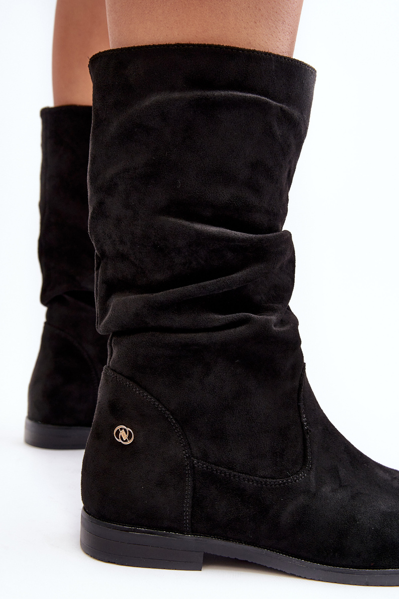 Ploché dámske topánky s krknutými hornými čiernymi kotínmi