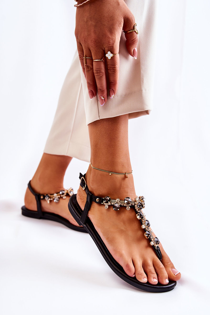 Pohodlné dámske sandále Flip -flops s čiernymi dekoráciami briken