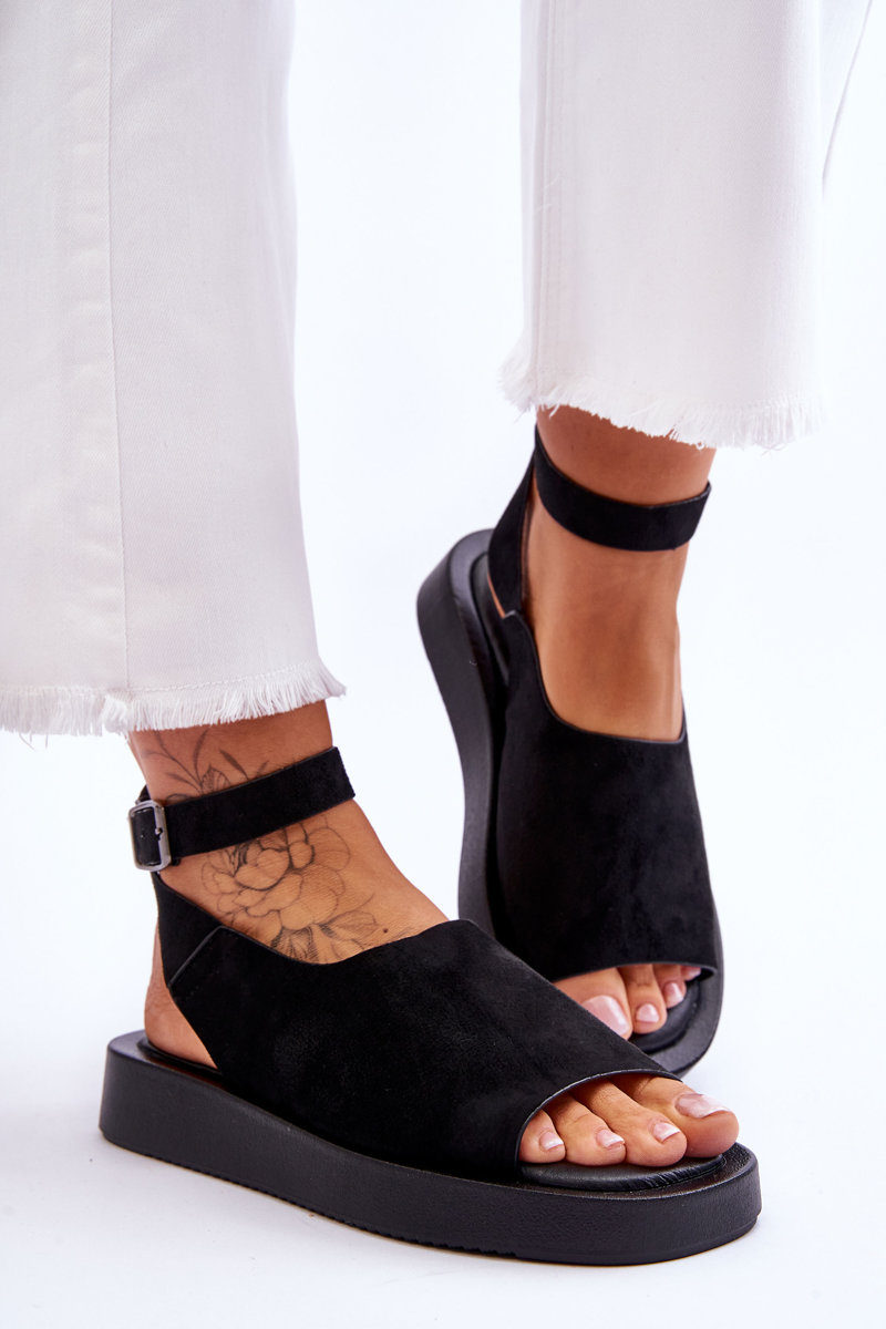 Unikátne ženské sandále na platforme. Tieto topánky boli vyrobené z ekologického semišu, aby sa dotkli. Majú mäkkú ekologickú vložku. Sandále sa pripevňujú okolo členku na nastaviteľnom pásme s prackou. Tento úžasný model určite obohatí váš letný šatník! Pri výbere veľkosti navrhnite tabuľku veľkosti.