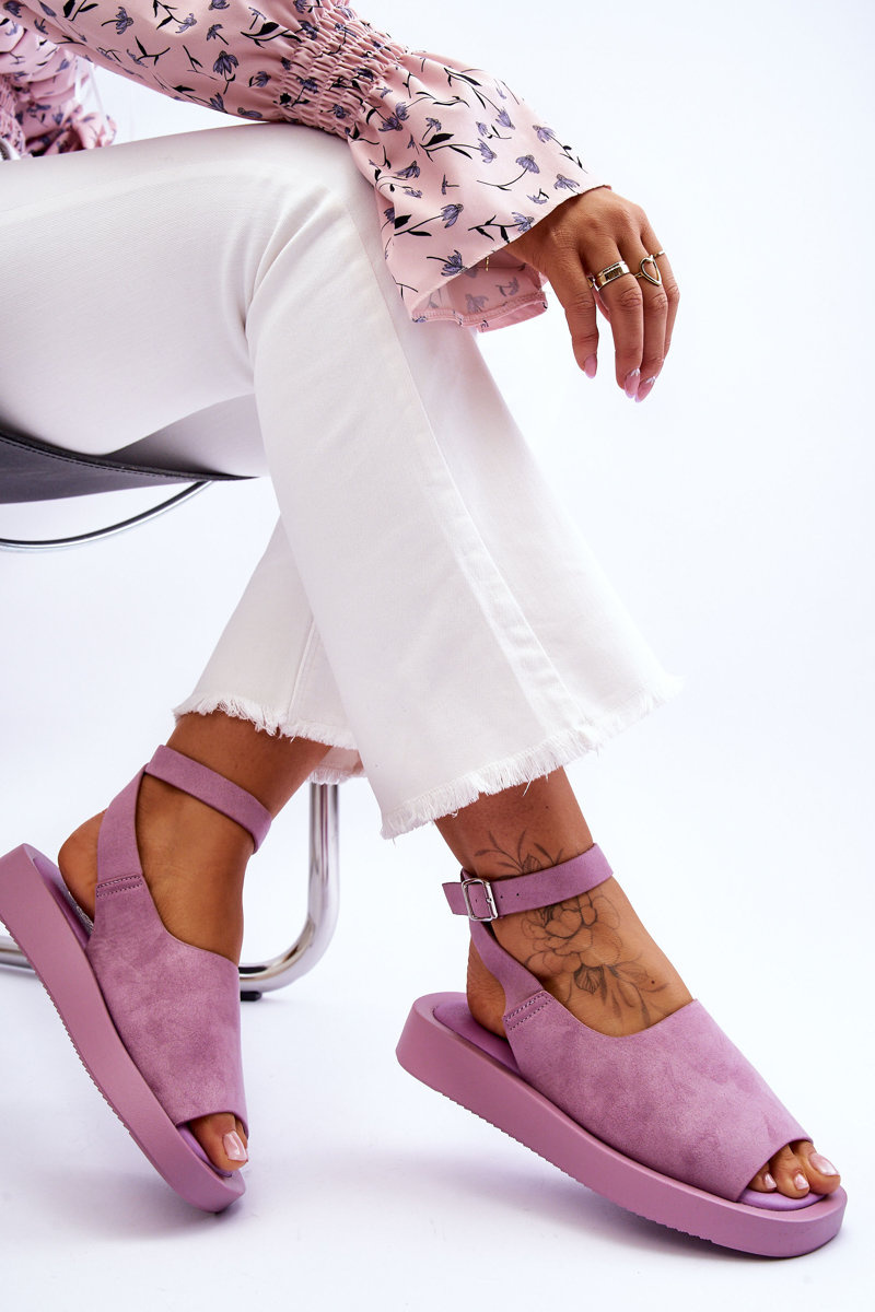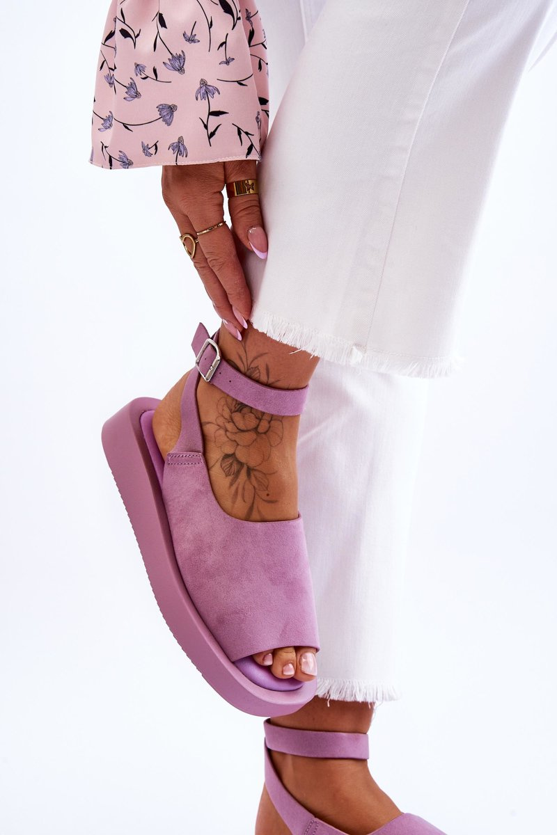 Unikátne ženské sandále na platforme. Tieto topánky boli vyrobené z ekologického semišu, aby sa dotkli. Majú mäkkú ekologickú vložku. Sandále sa pripevňujú okolo členku na nastaviteľnom pásme s prackou. Tento úžasný model určite obohatí váš letný šatník! Pri výbere veľkosti navrhnite tabuľku veľkosti.