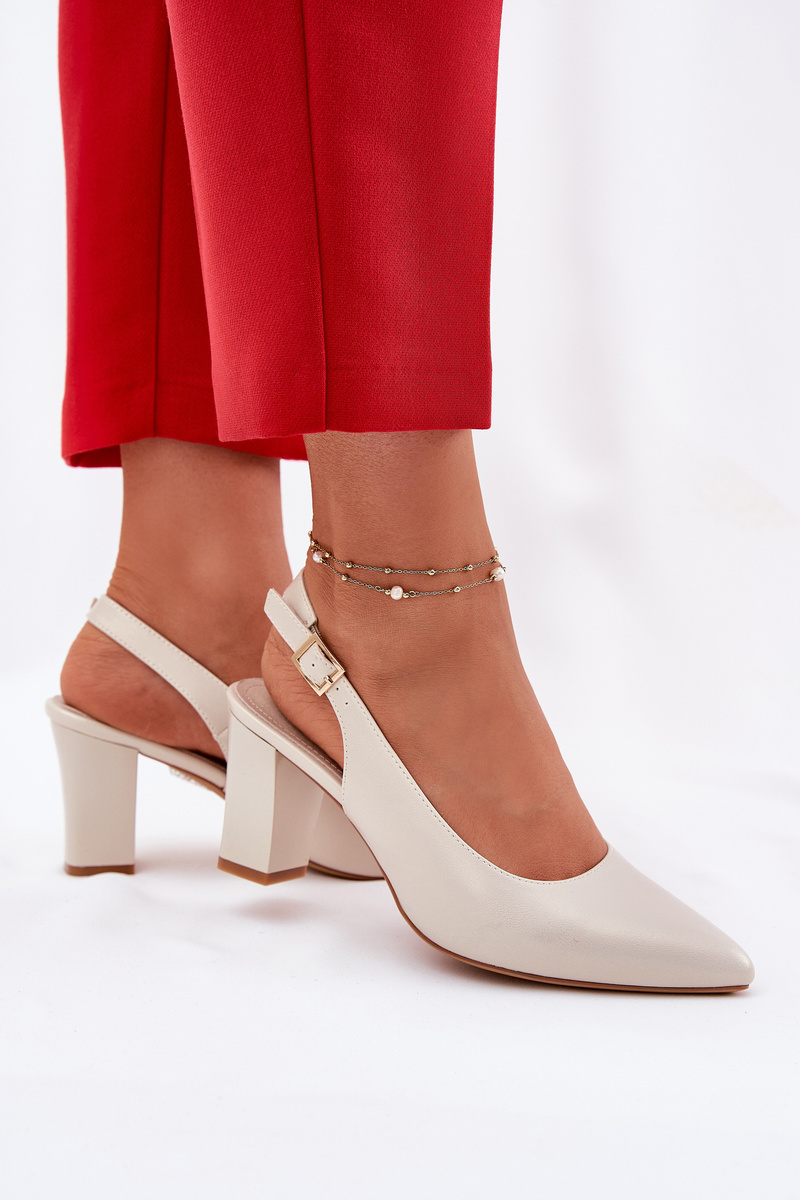 Pohodlné lodičky umiestnené na stabilnom blokovom podpätku. Majú zapínanie okolo členka s nastaviteľným remienkom a prackou. Model s špicatou špičkou a odhalenou pätou. Tieto topánky sú vyrobené z eko kože, zatiaľ čo stielka je z prírodnej kože. Tento model by mal byť vo vašej skrini! Při výběru velikosti se řiďte tabulkou velikostí.