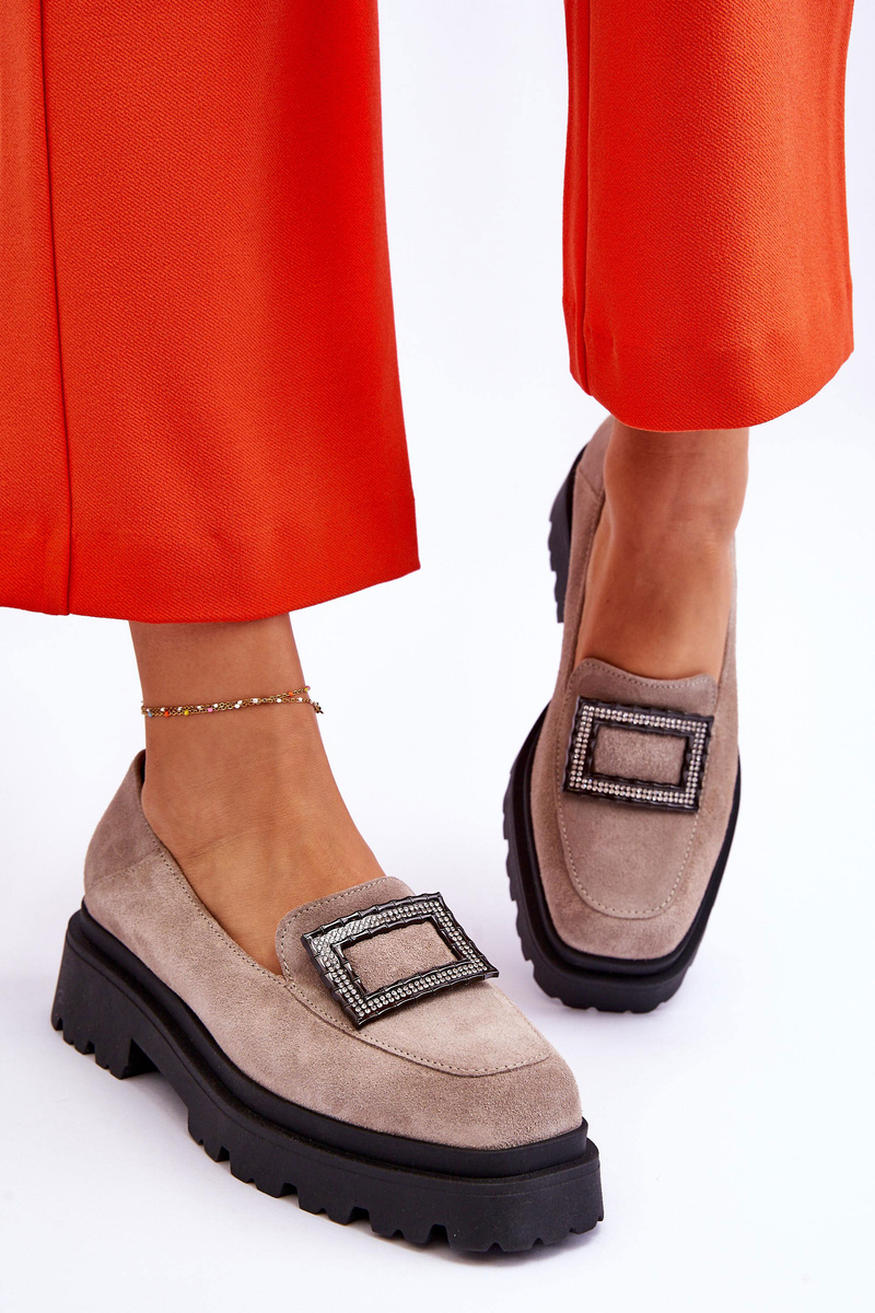 Módne, dámske mokasíny boli vyrobené z prírodnej kože. Moccasíny sú zabudované na masívnej plošine a plochých podpätkoch. Okrem toho majú prednú dekoráciu s kamienkami a stuhnutou pätou. Mäkká vložka zabezpečí pohodlné použitie. Mokasíny sú skvelé v mnohých štýloch! Pri výbere veľkosti navrhnite tabuľku veľkosti. p>