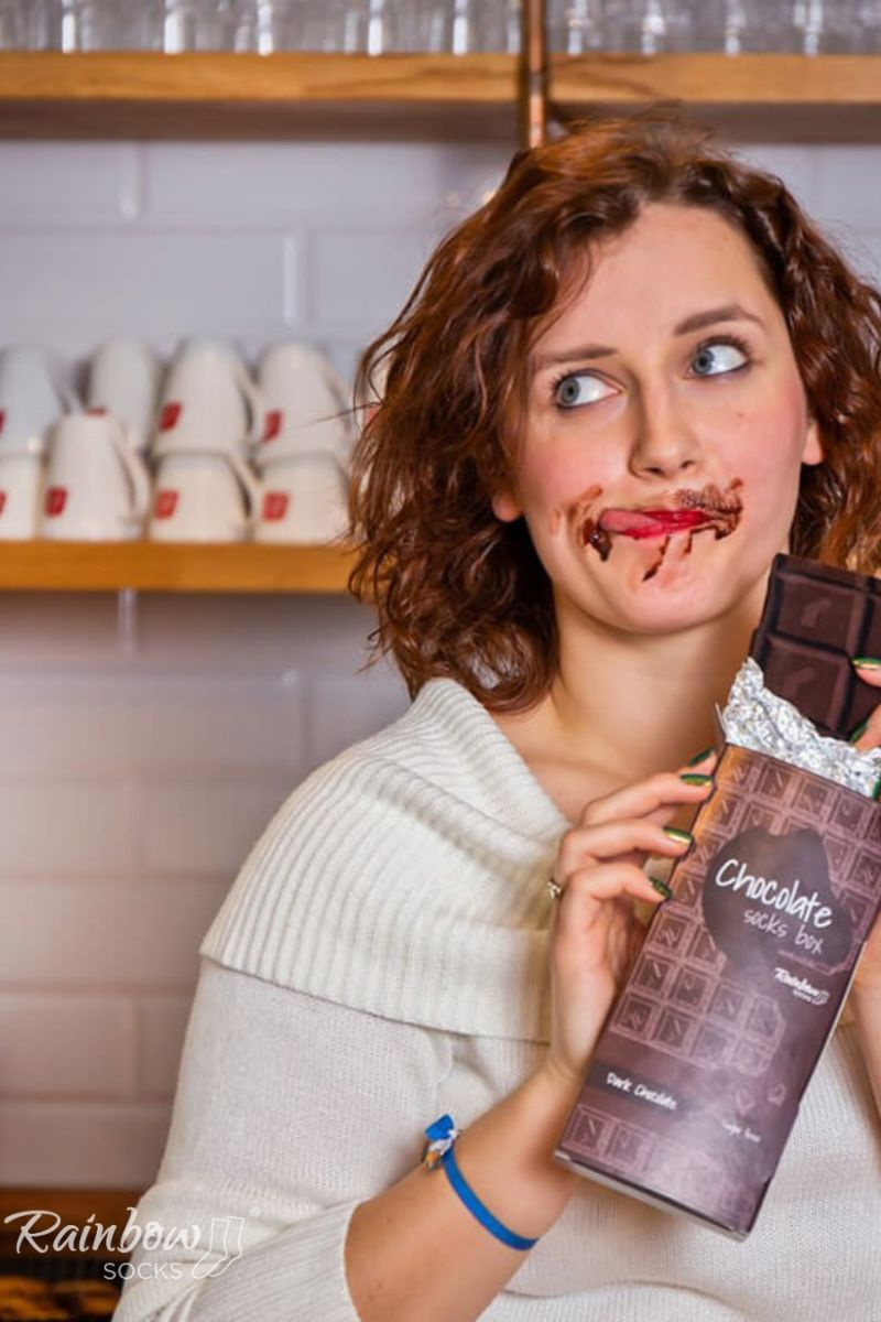 Nemôžete prežiť deň bez kociek čokolády? Chceli by ste nájsť ten, ktorý je sladký a zelenina, ale zároveň neobsahuje cukor? Tu je ona! Čokoládové ponožky - vtipné ponožky, ideálne pre každého gurmára. Áno, áno - toto nie je skutočný čokoládový tanier, aj keď tak vyzerá. V pôvodnej krabici je zabalený pár vynikajúcich šialených ponožiek. Doprajte svojej strave bez výčitiek a vychutnajte si úžasné ponožky prispôsobené skutočnej belgickej čokoláde!