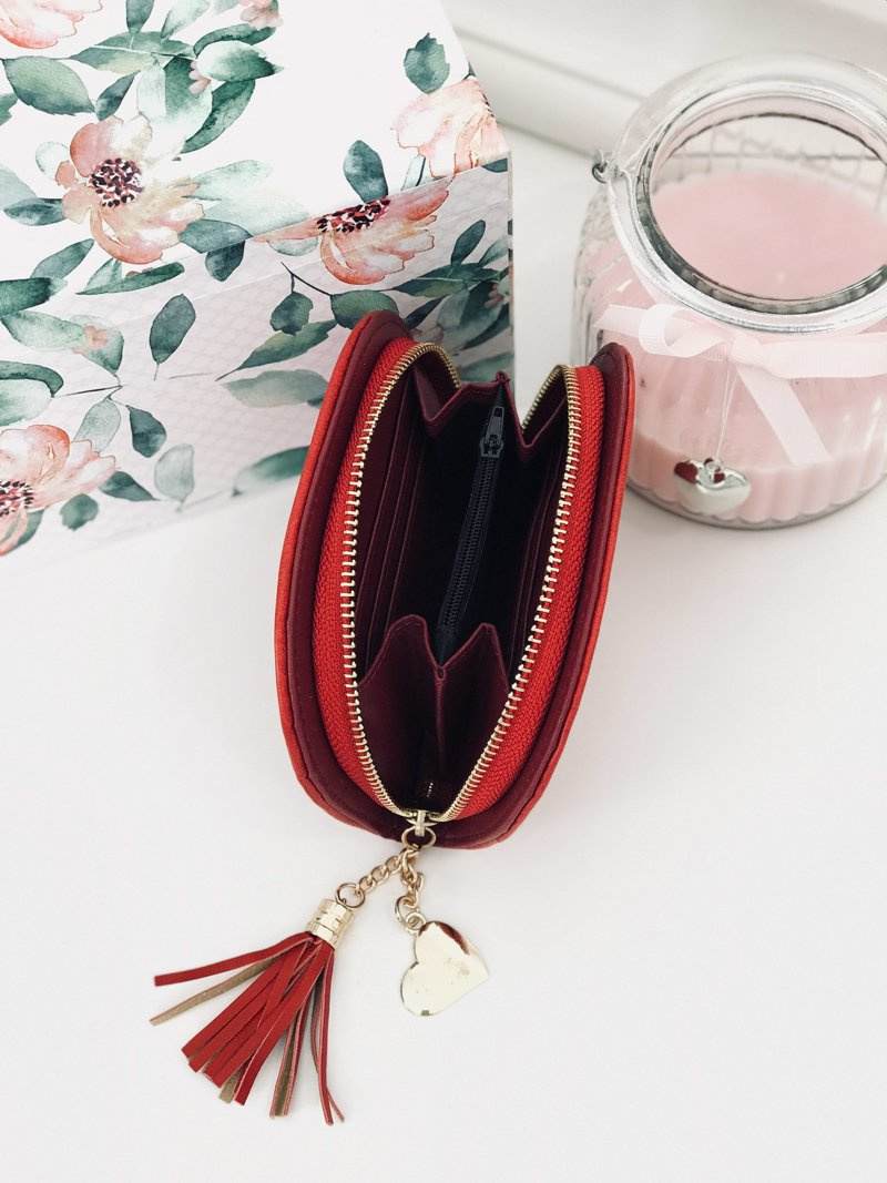 Portfólio červenej dámskej kabelky s Fringom