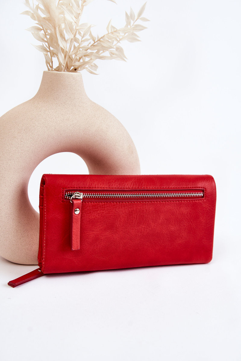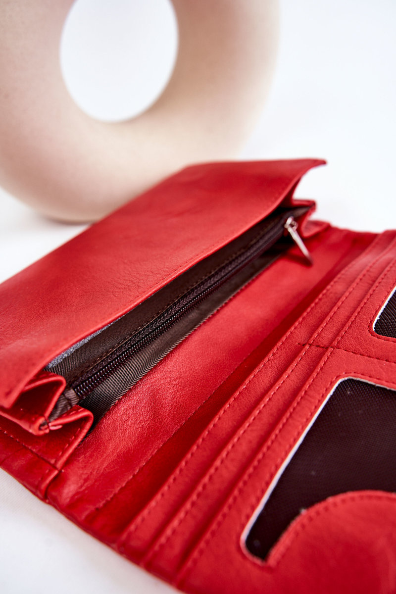 Klasická, veľká dámska peňaženka bola vyrobená z ekologickej kože. Uzavreté magnetom. Komora má otvorené vrecká a jedno uzavreté zipsom. Peňaženka navyše obsahuje priestor pre vizitky, identifikačné karty a miesto pre fotografiu. Vrecká v klapke a vzadu sú uzavreté zipsom.