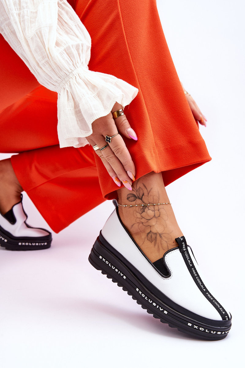Skóra naturalna - labeltak Towar wprowadzony przed 13.12.2024Tak Pošmyknuté kožené dámske biele tenisky Nathalie
