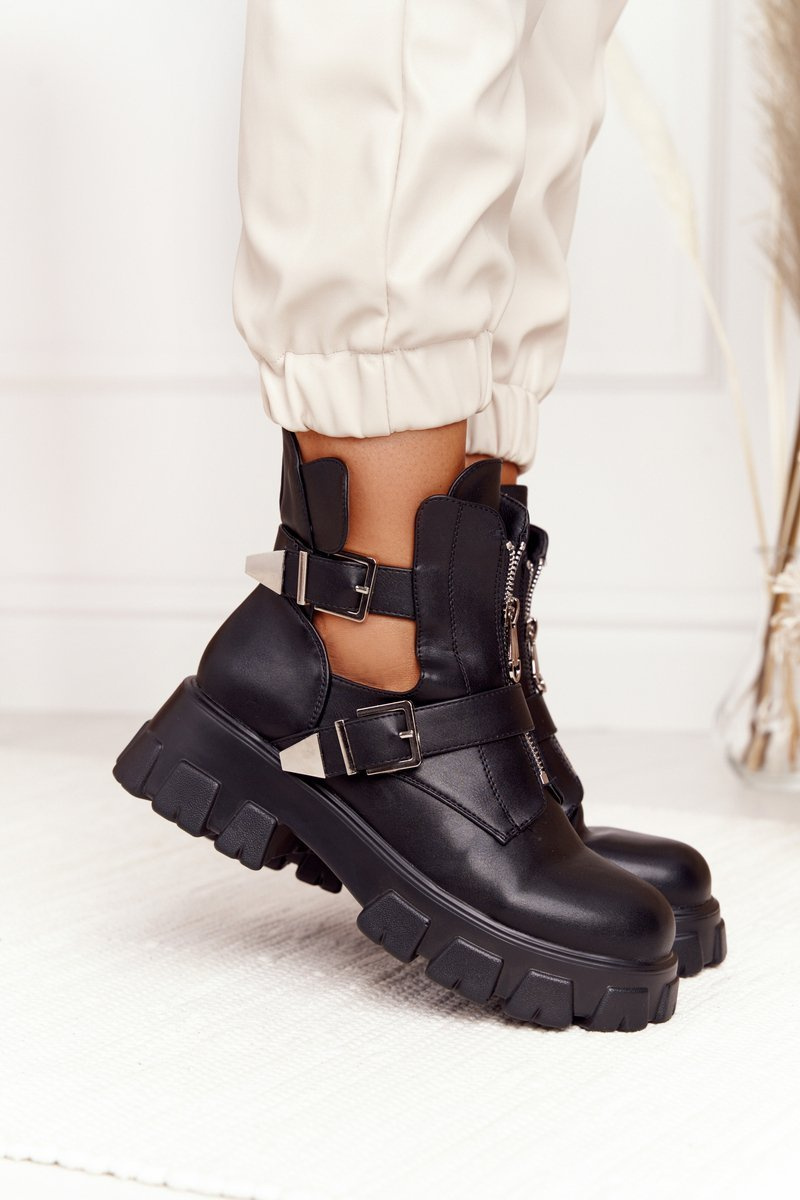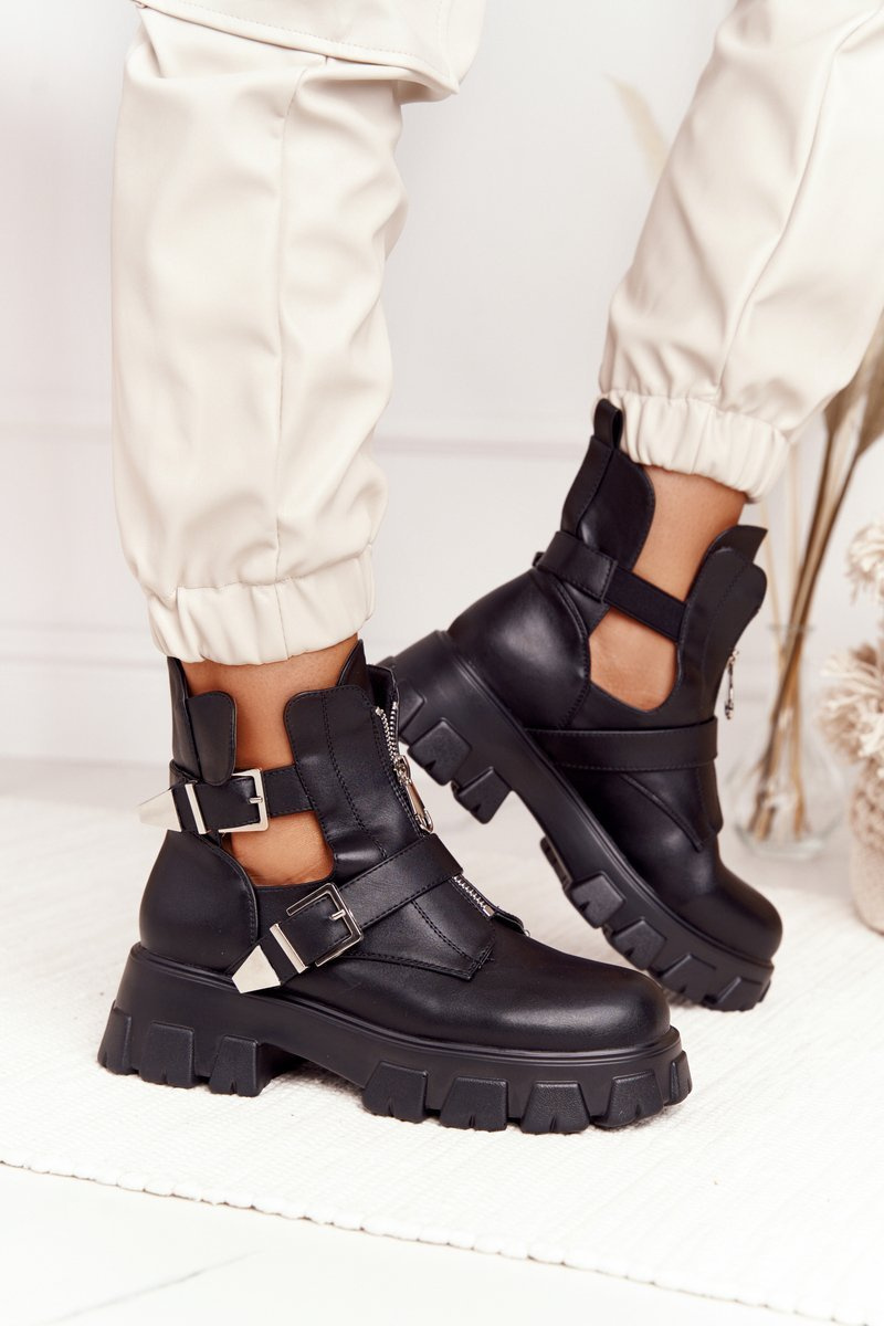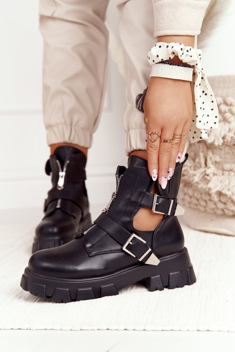 Unikátne topánky s výrezmi a prackami na masívnej plošine. Pracovníci sú vyrobené z ekologickej kože. Topánky sa dokonale vyrovnávajú glam rock alebo grunge štylizácie. Pri výbere veľkosti navrhnite tabuľku veľkosti.
