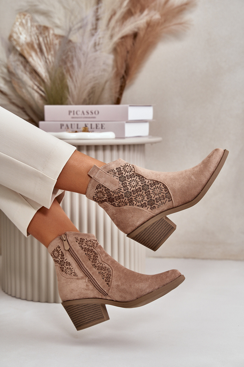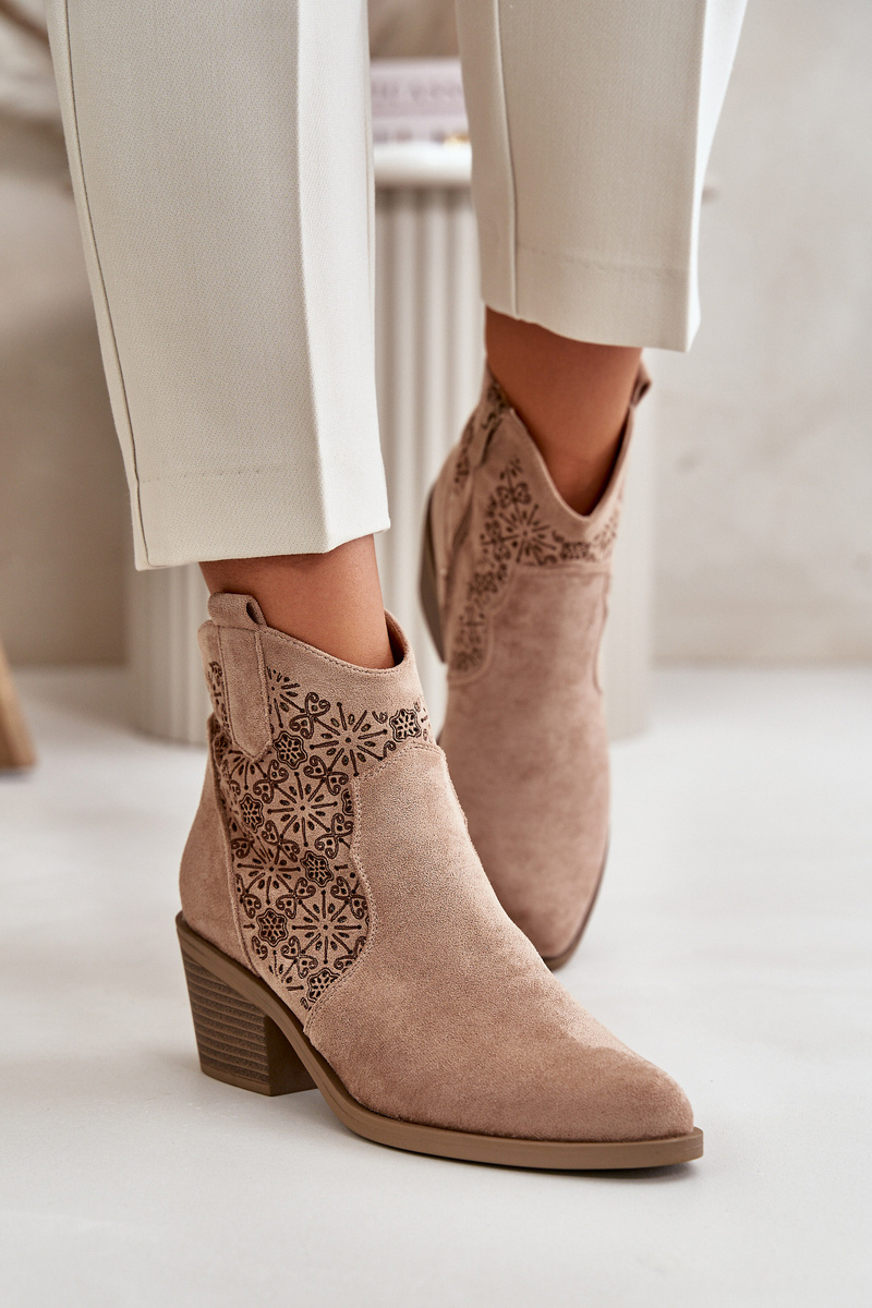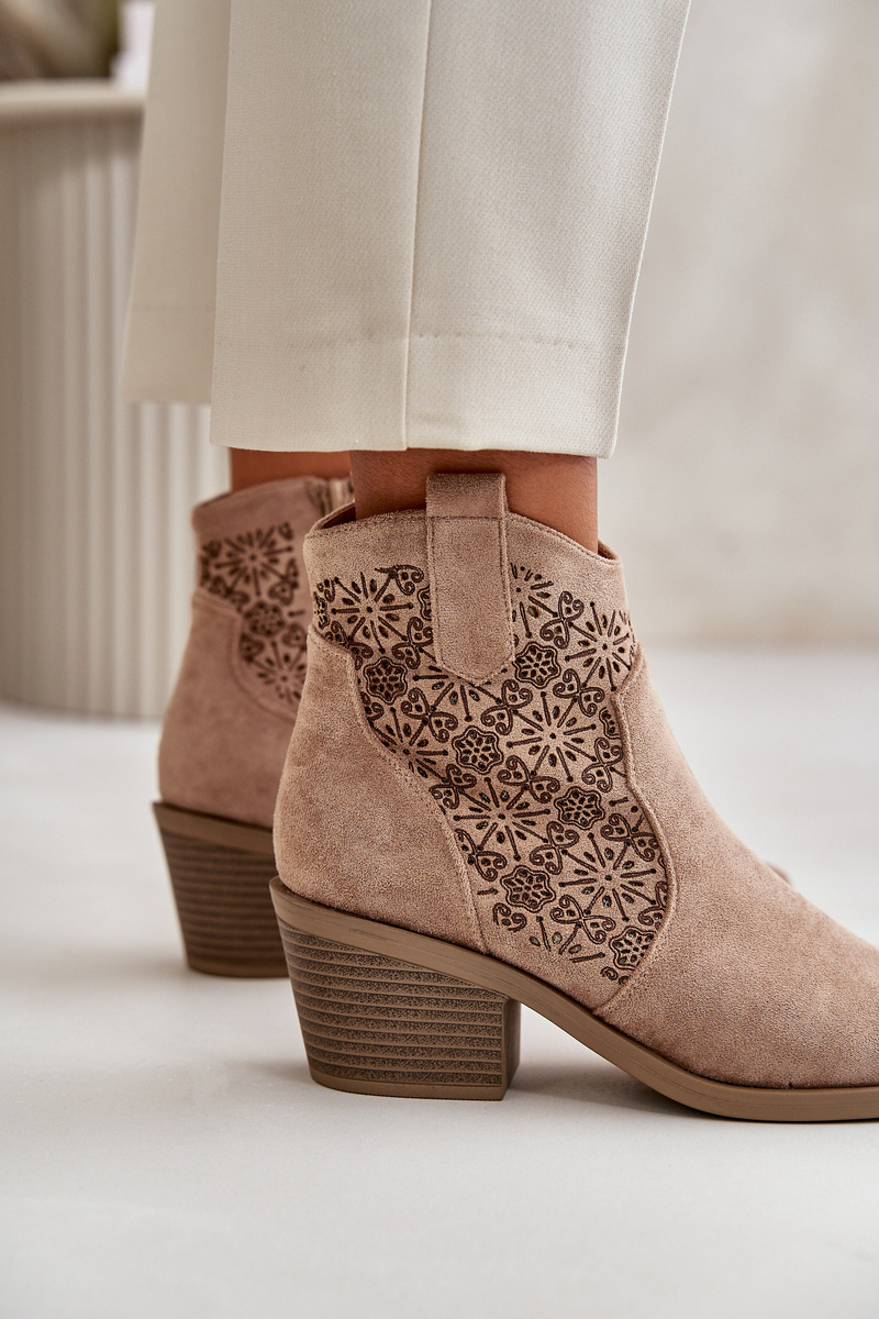 Prekryté Cowboy Členkové Topánky Na Zips Eko Semišové Béžové S.Barski HY42-944