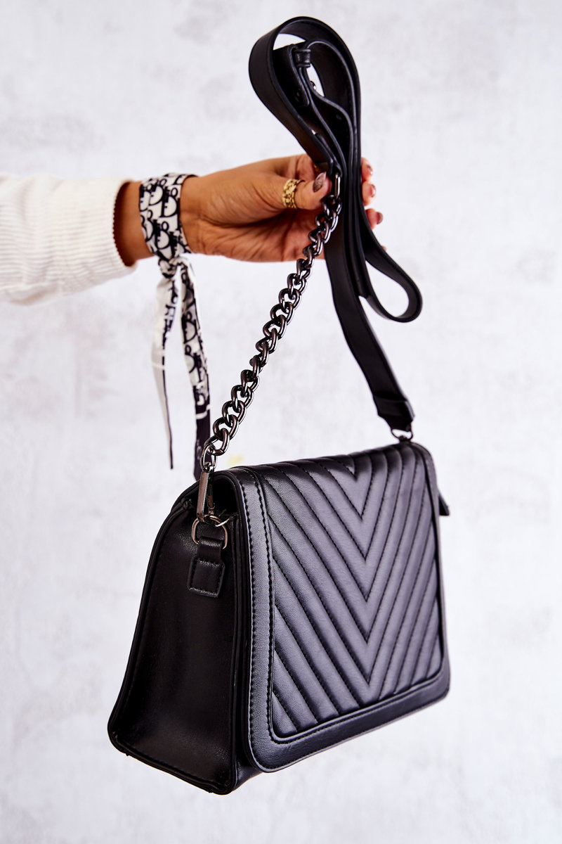 Krásna, prešívaná taška vyrobená z ekologickej kože. Zatvorená kabelka magnetu. Okrem toho je komora pripevnená posúvačom. Agent je vyrobený z látky. Je tu jedno vrecko, ktoré je pripevnené zipsom. Na vonkajšej strane vaku je ďalšie vrecko zatvorené zipsom. Okrem toho má taška nastaviteľný remienok.