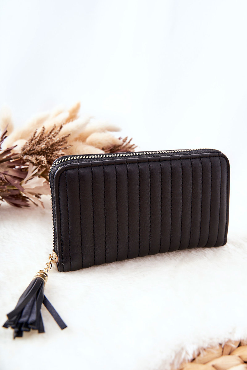 Prešívaná peňaženka s lemovanou čiernou farbou