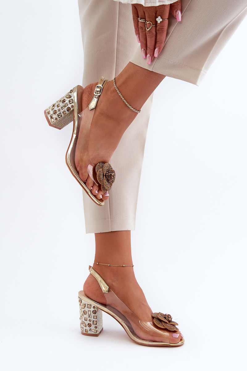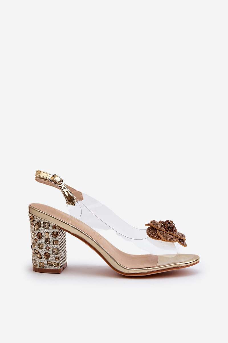 Priehľadné sandále na opätku s ozdobami S.Barski MR38-356 Zlaté