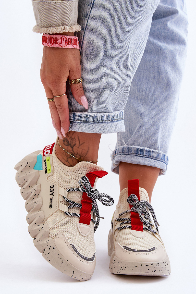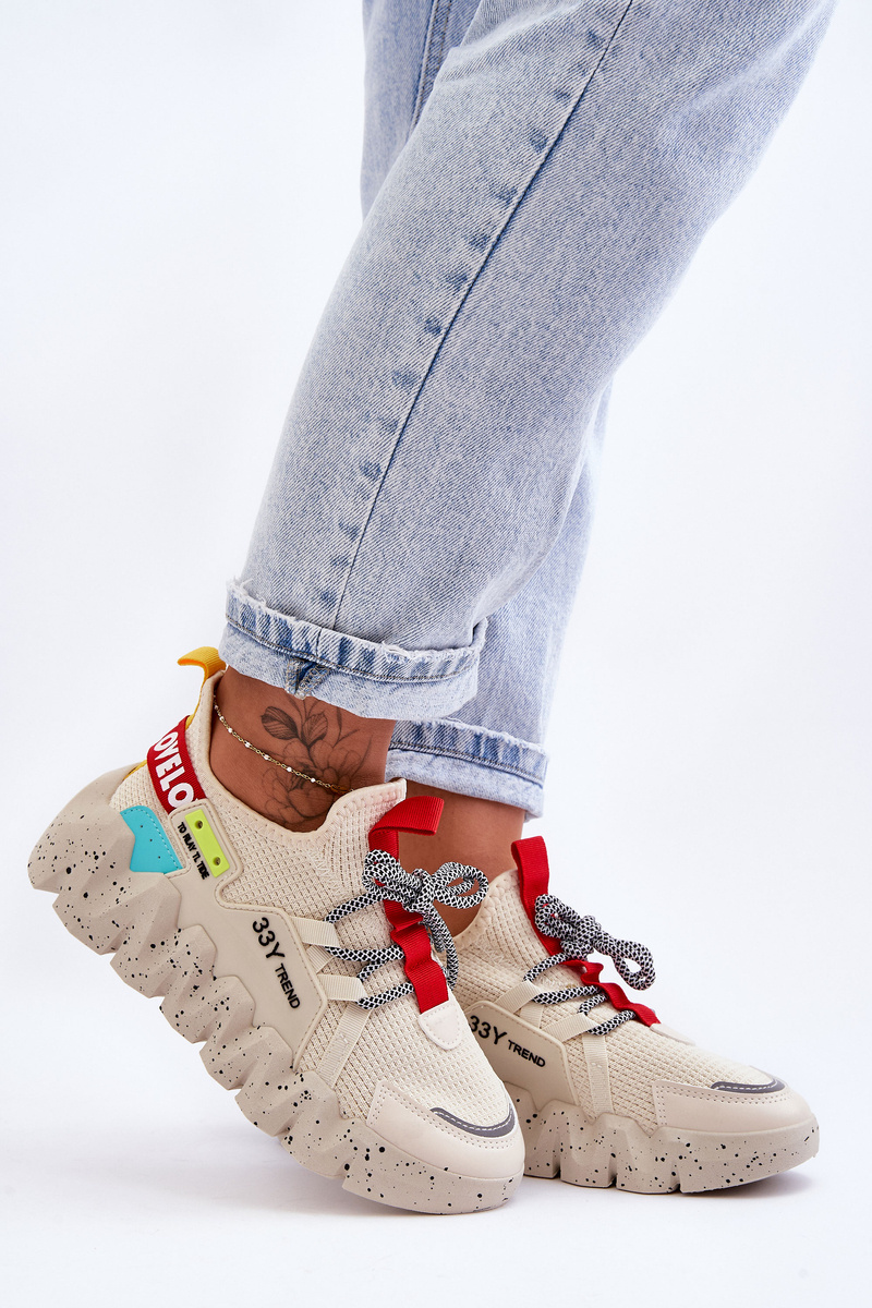 Športové topánky boli vyrobené z kombinácie textilného materiálu a gumy. Model je vložený a má tiež šnurovanie. Topánky boli umiestnené na masívnej plošine s podrážkou, ktorá nie je k dispozícii. Mäkká vložka z kombinácie penového a textilného materiálu zabezpečí pohodlné použitie obuvi. Tieto módne tenisky budú fungovať v mnohých štýloch. Pri výbere veľkosti navrhnite tabuľku veľkosti. p>