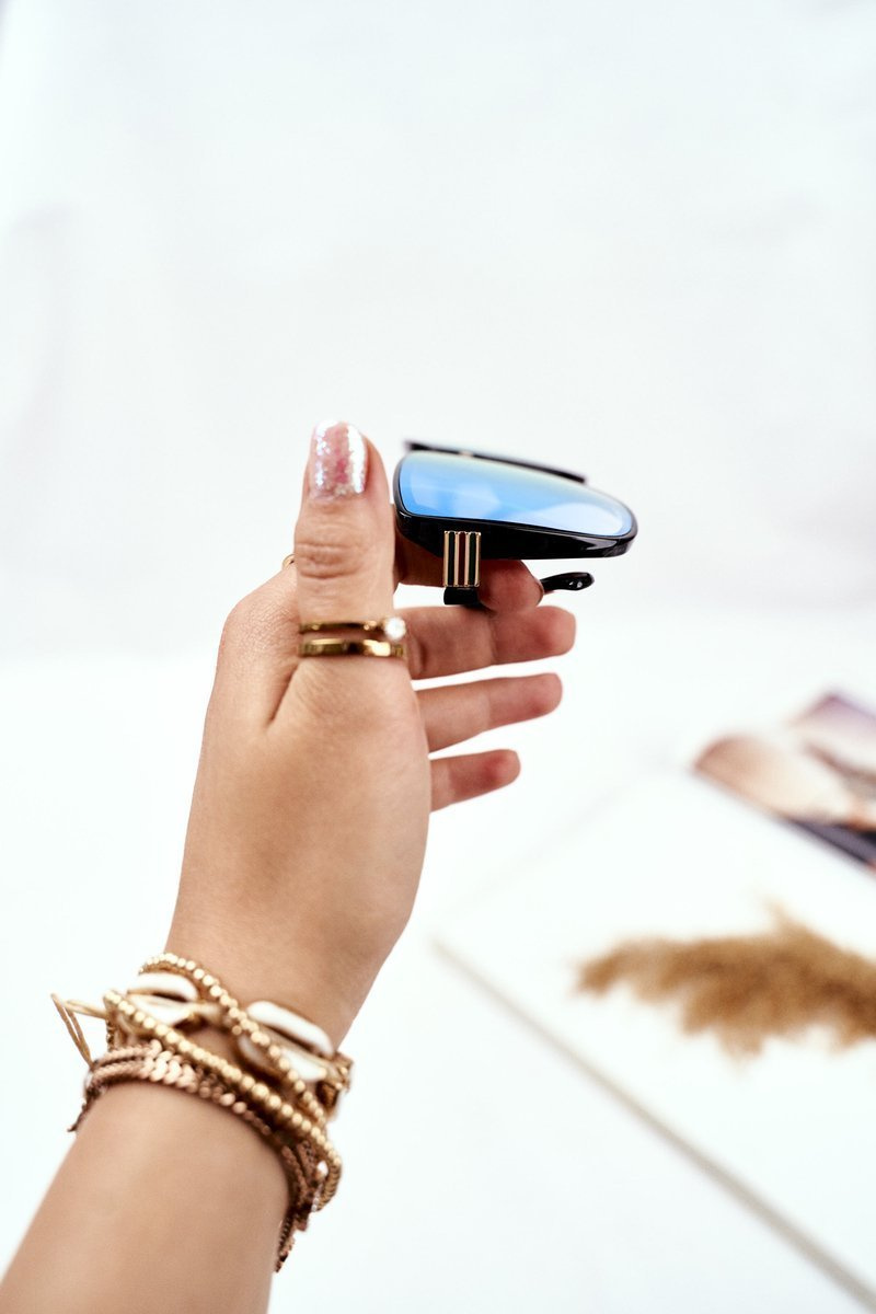 Okuliare majú šošovky s krásnym čiernym gradientom a módnou dekoráciou na chrámoch, viditeľné na obrázkoch.Fotografie sú naše autorstvo a predávajú produkt.